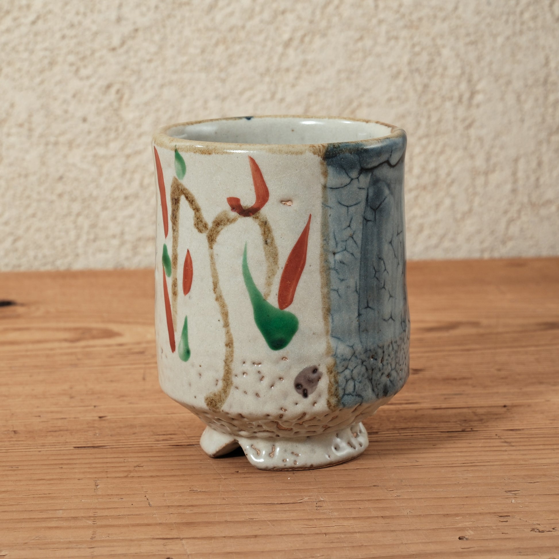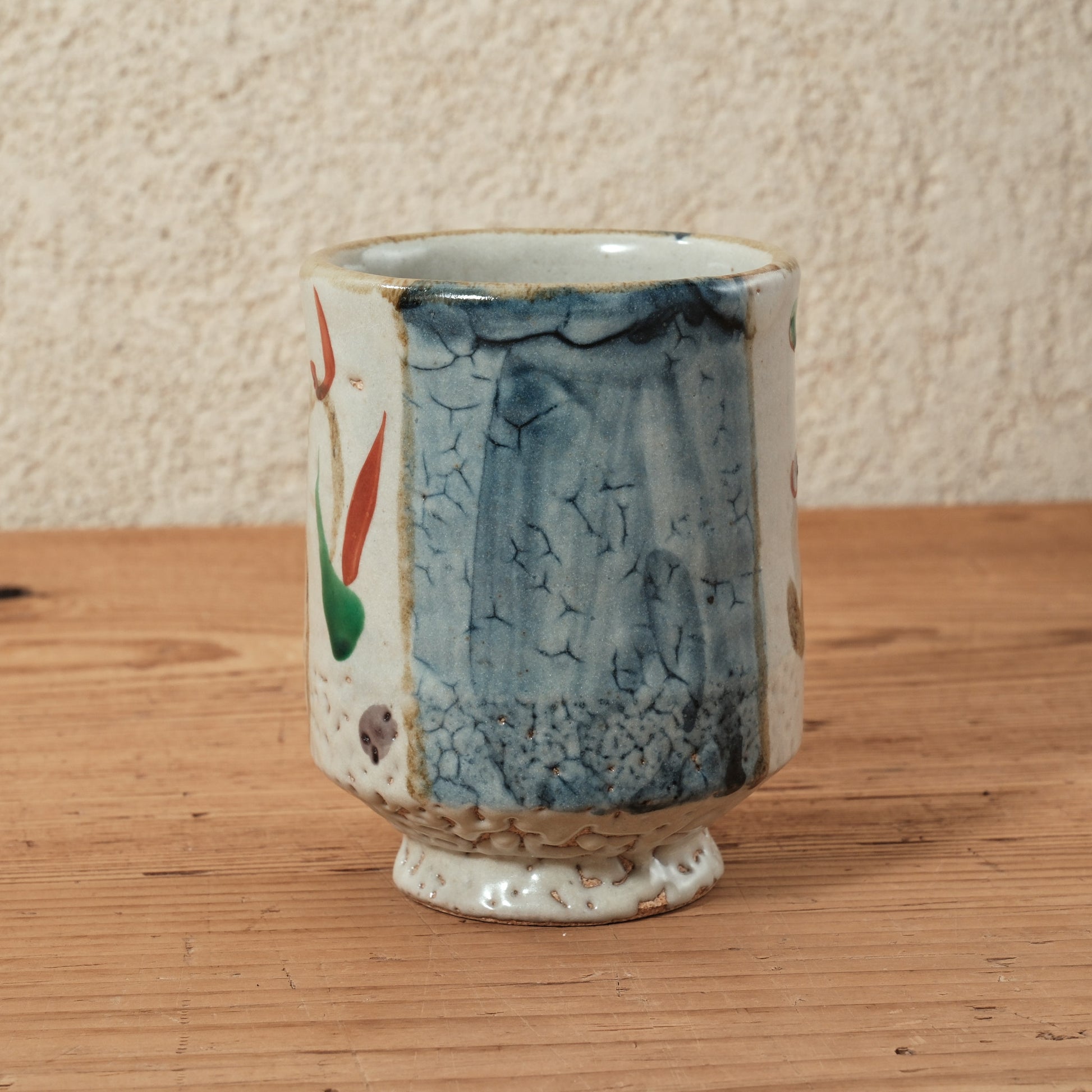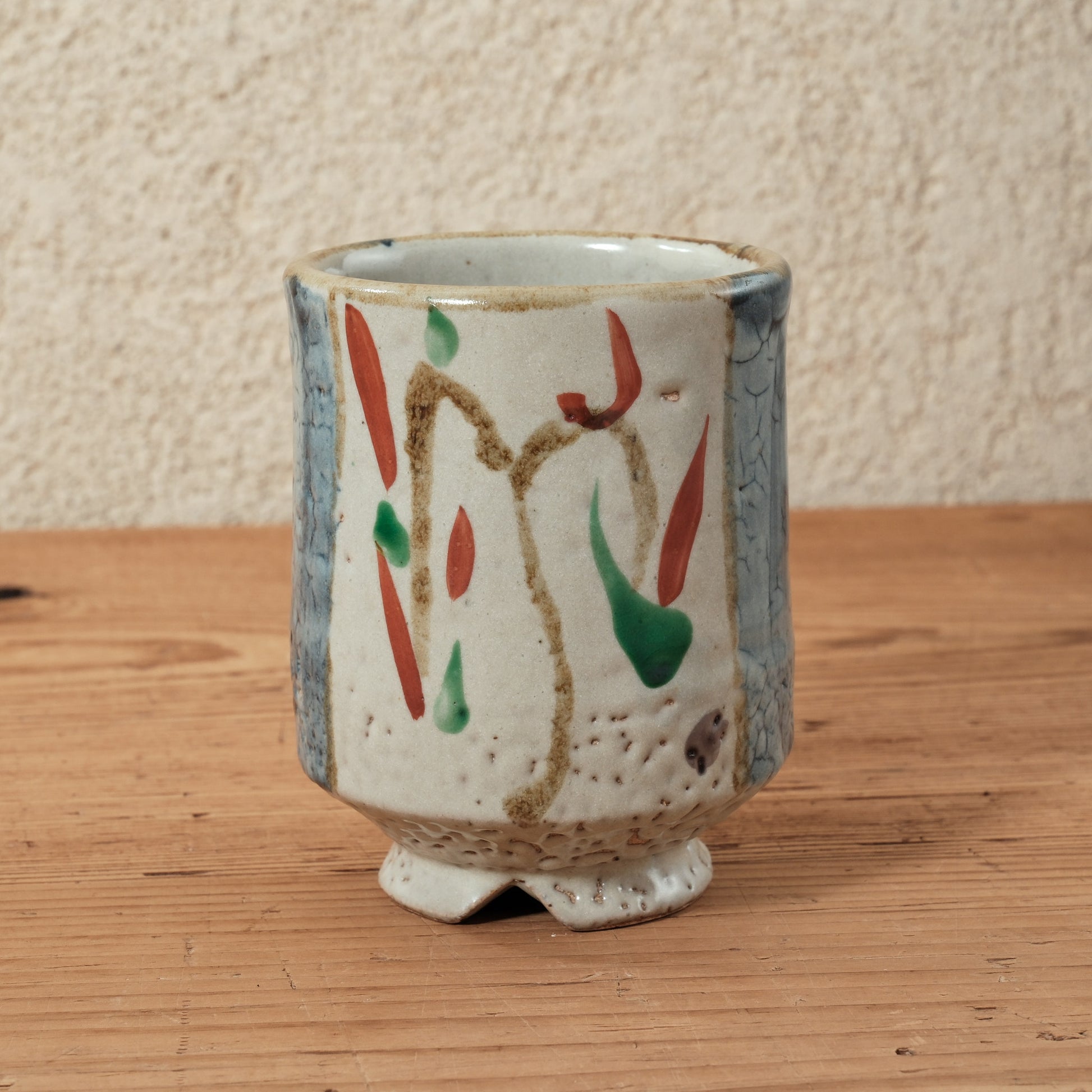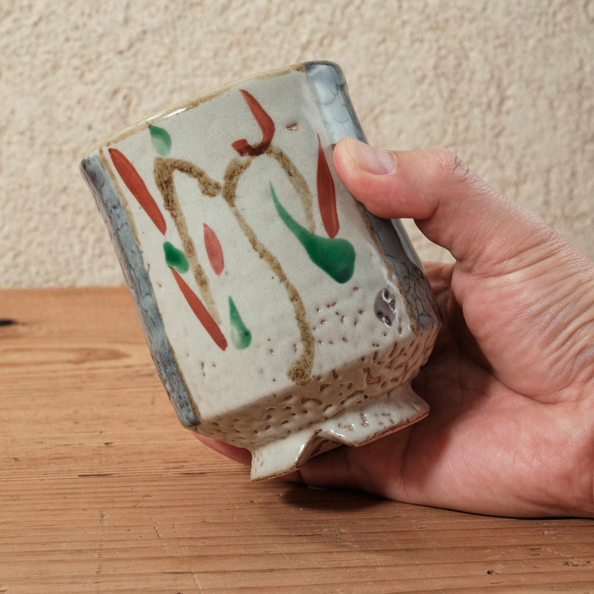 焼成後に上絵具で赤や緑などの色を加える装飾法。華やかさと温かみを添える。