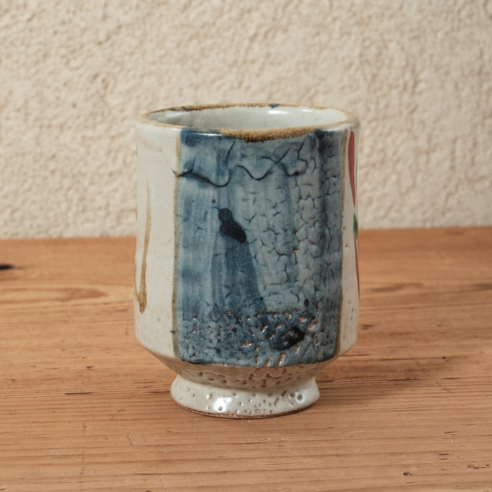 益子の陶芸家・松原直之さんによる、鉄絵と赤絵の湯呑。(1点物)