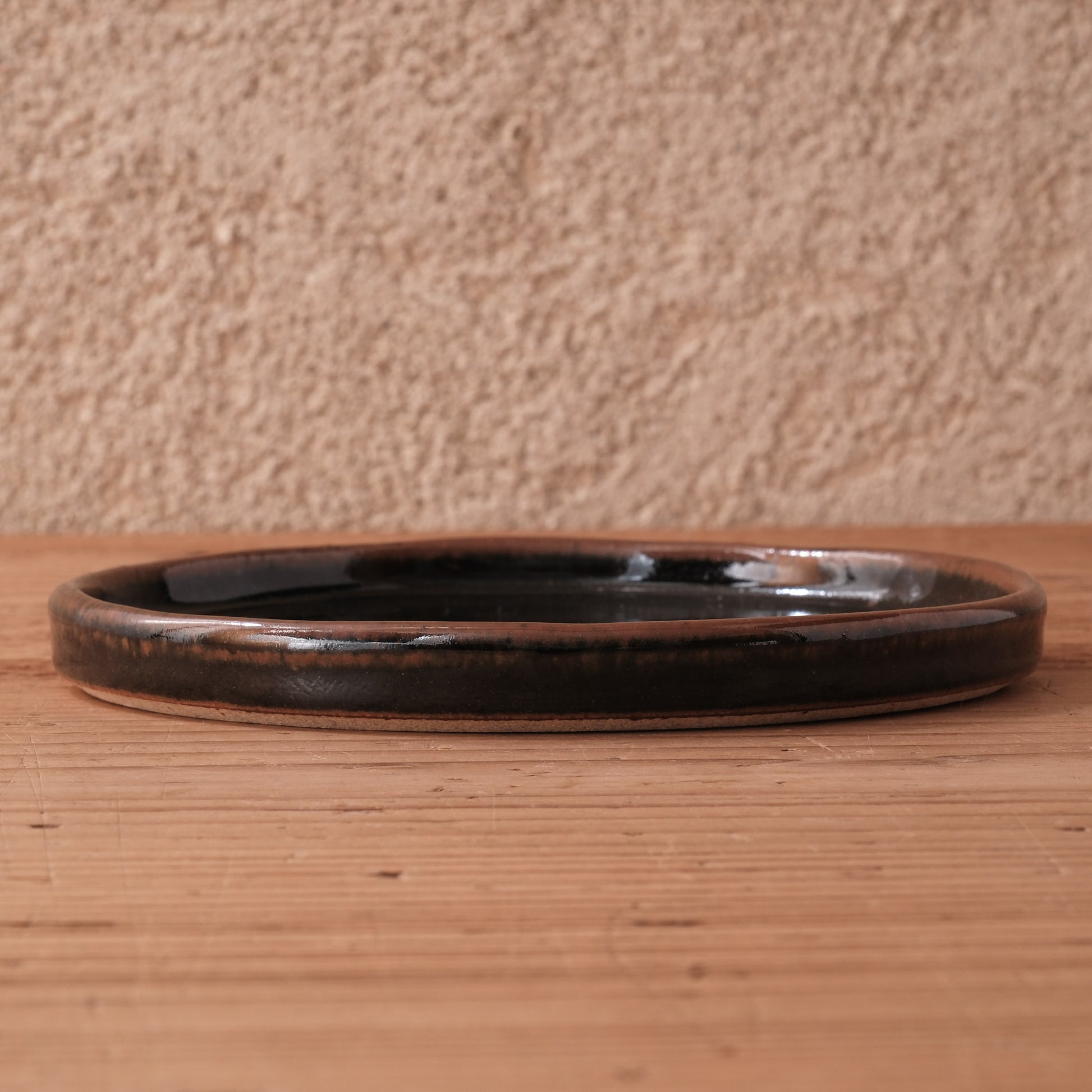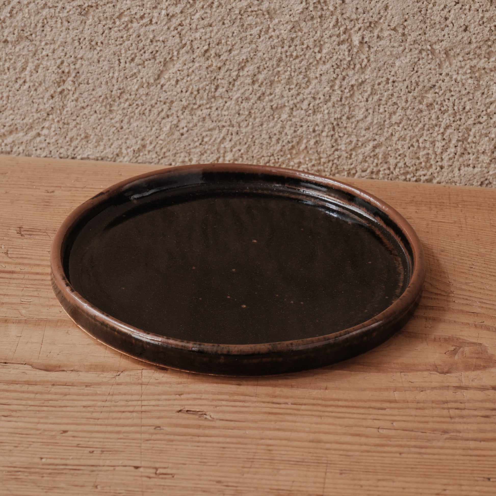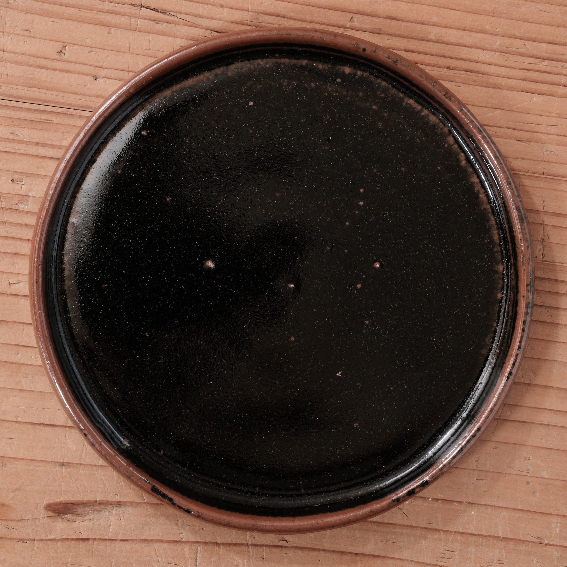 深みのある黒釉と、端正なリムが印象的な4寸サイズの小皿です。