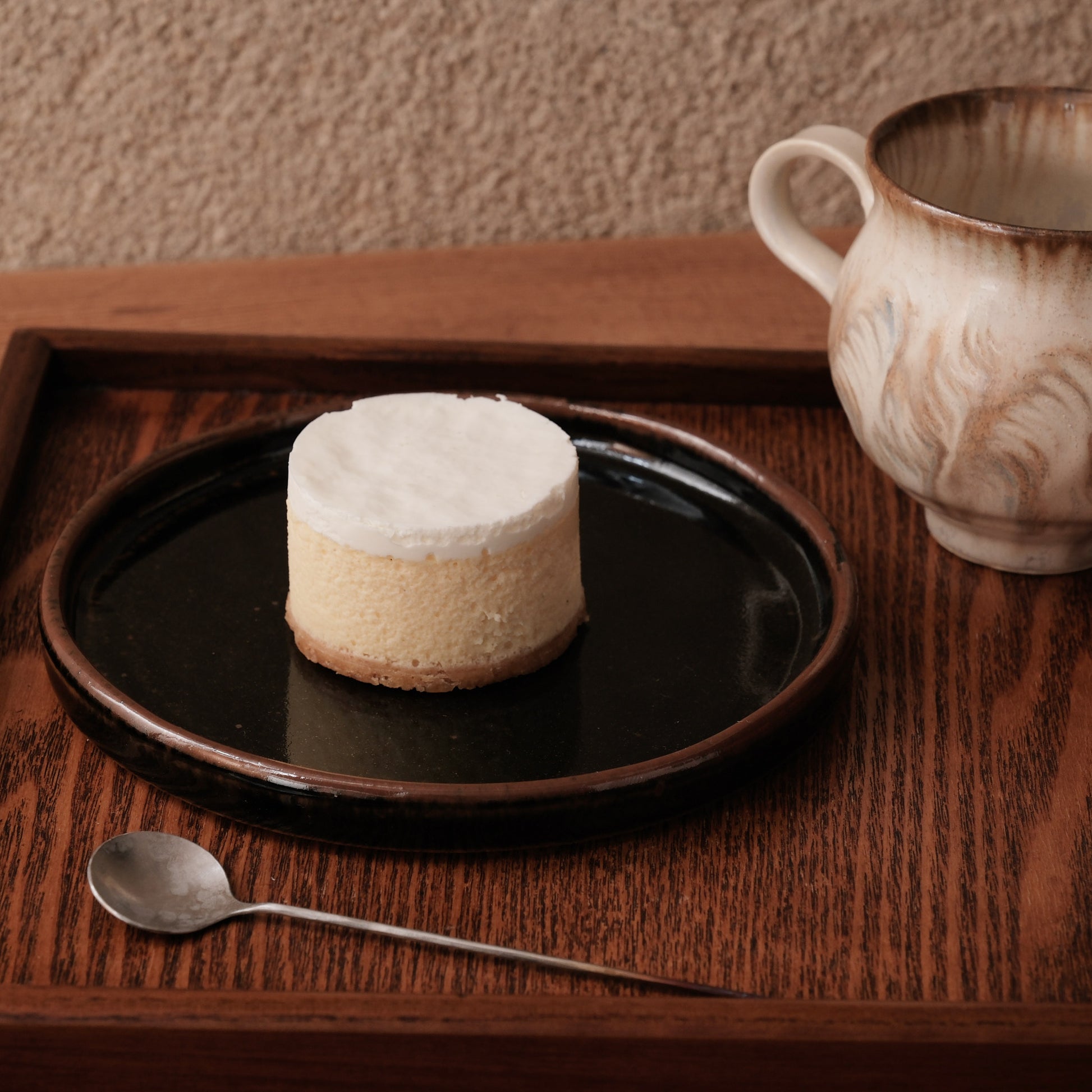 黒釉の落ち着いた色合いは、白いケーキや焼き菓子、和菓子の色を美しく際立たせてくれます。