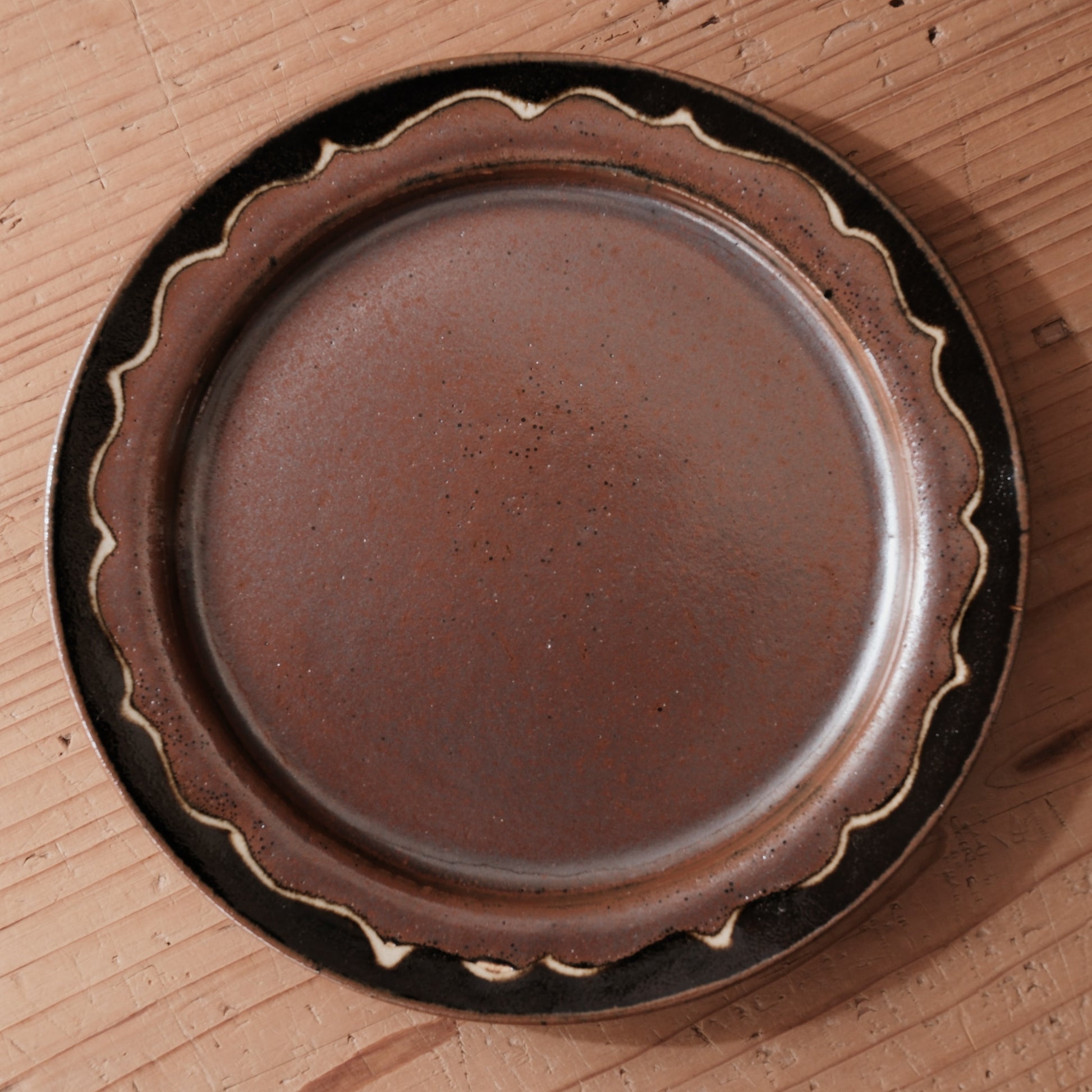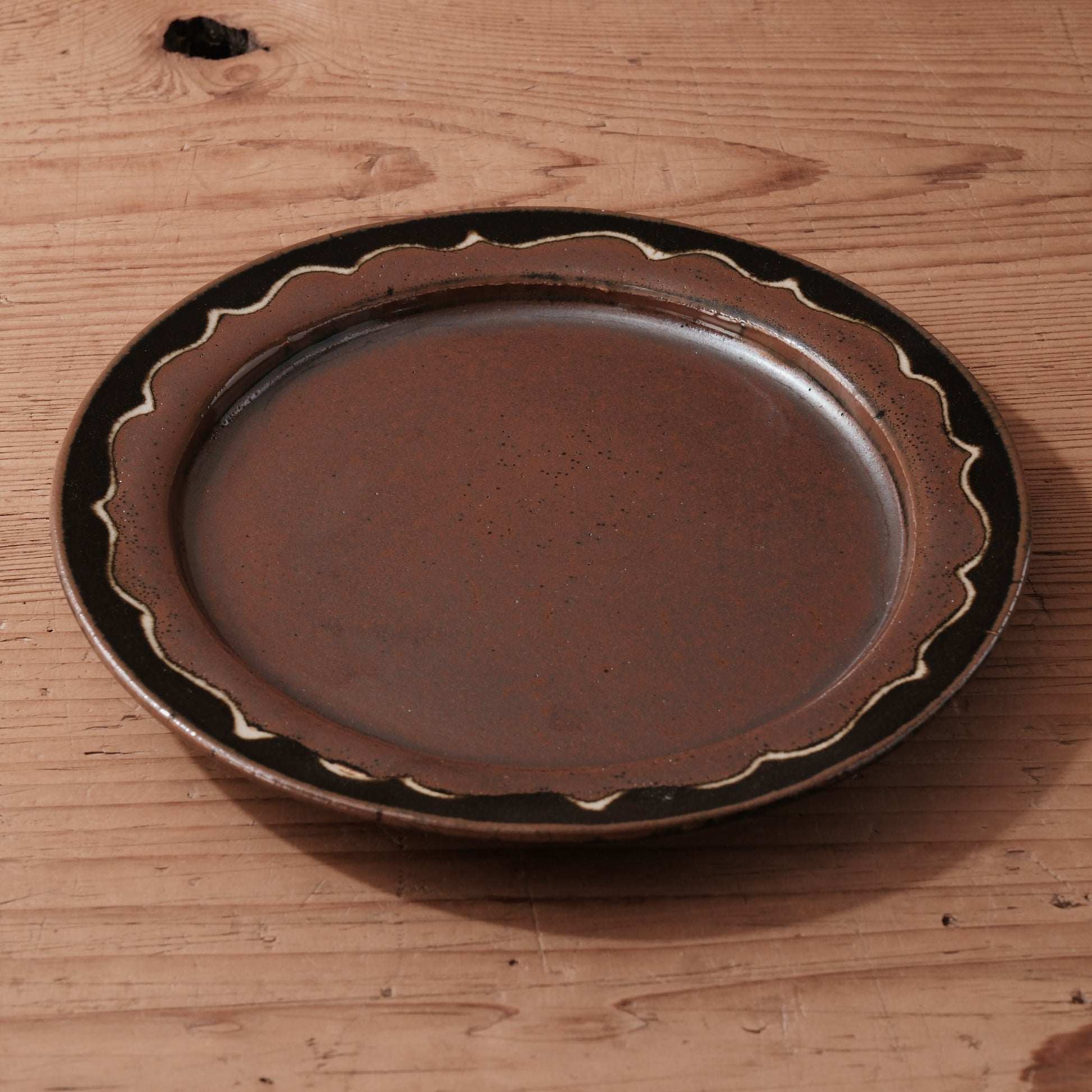 柿釉と黒釉が重なり合う、深みのある表情が魅力の7寸中皿です。
