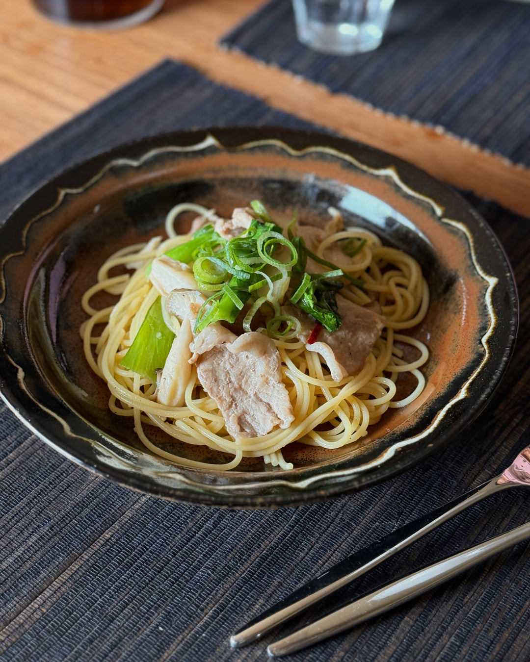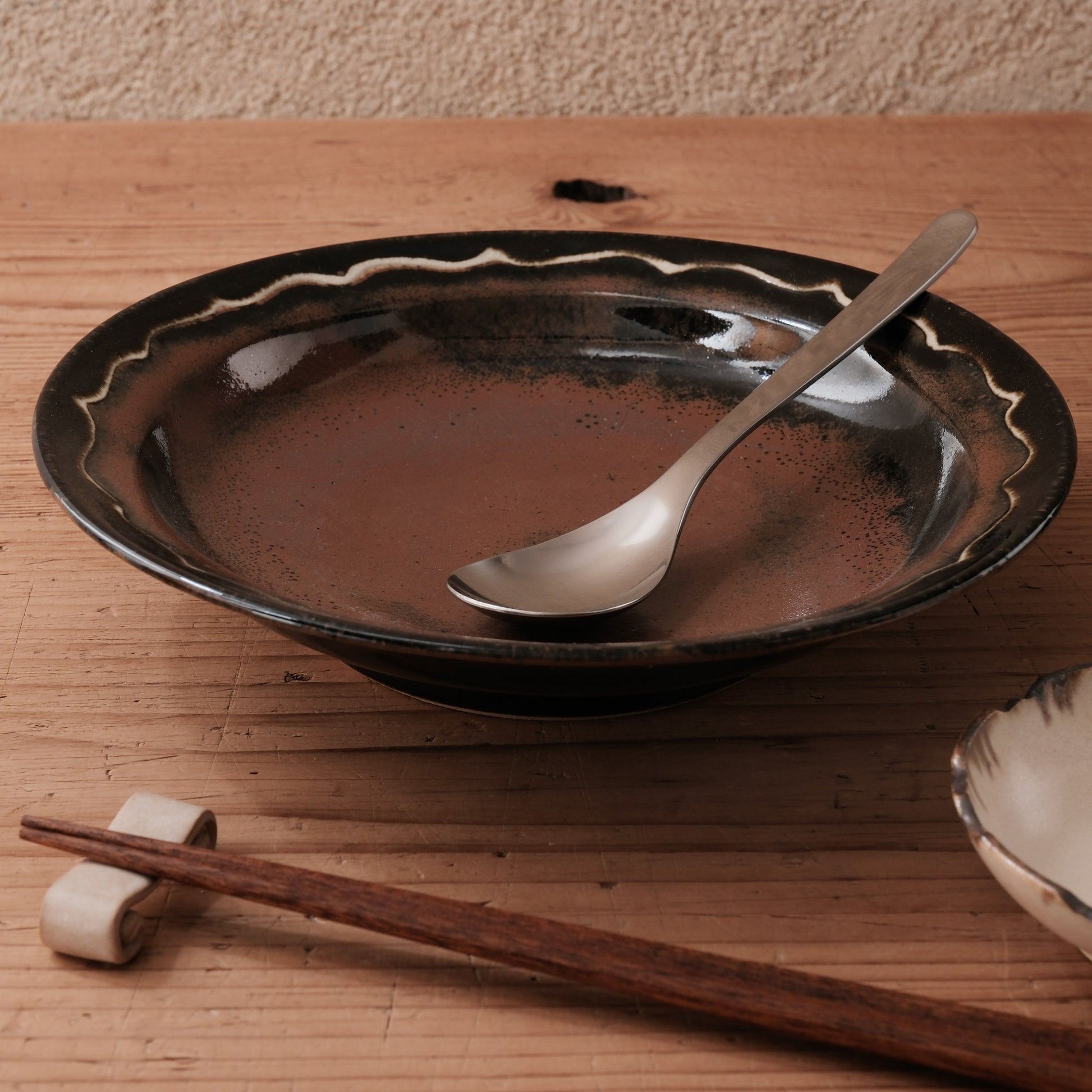 ろくろ成形ならではの自然な立ち上がりに、釉薬の流れが重なり、落ち着きの中に動きのある表情を生み出しています。