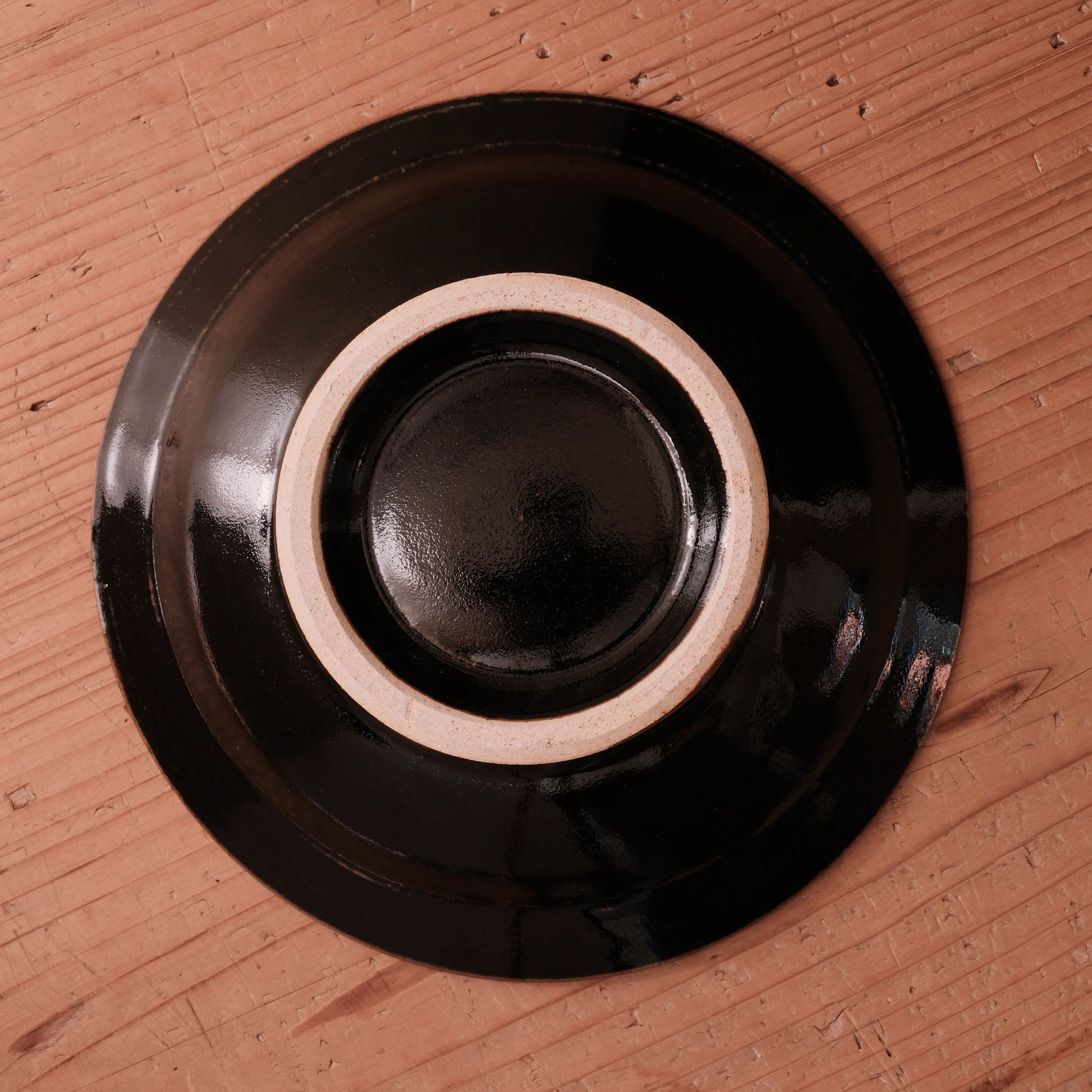 見込みにはあたたかみのある柿色が広がり、縁には黒釉がまわることで、