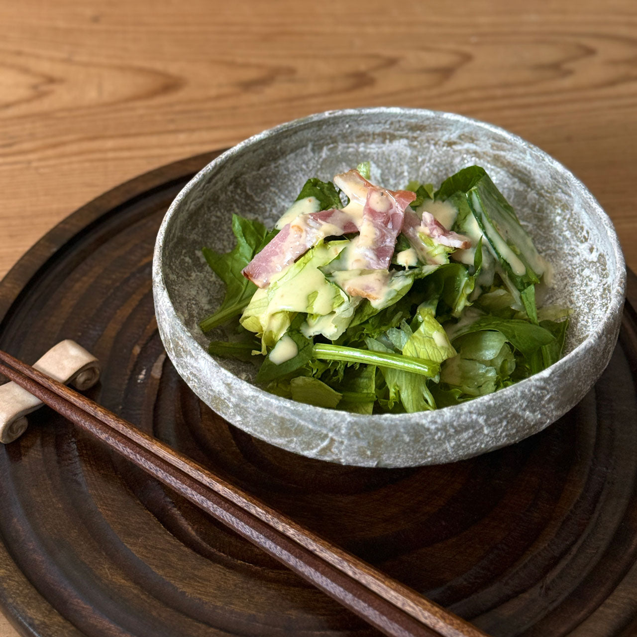 優雅な曲線と少し横にたゆんだ形状は、少量の惣菜を盛るのに適した中鉢。