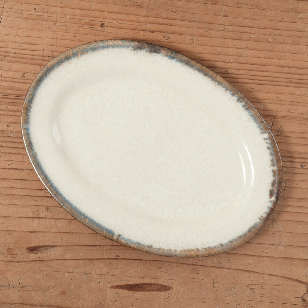 OOZE(=染み込む、溶け流れる)というシリーズ名の通り、釉薬の流れが印象的なオーバルプレートです。