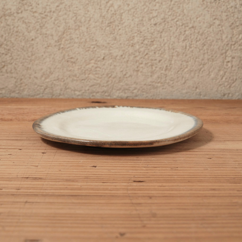 アイボリー調の釉肌に、縁へと溶け込むような青みのライン。