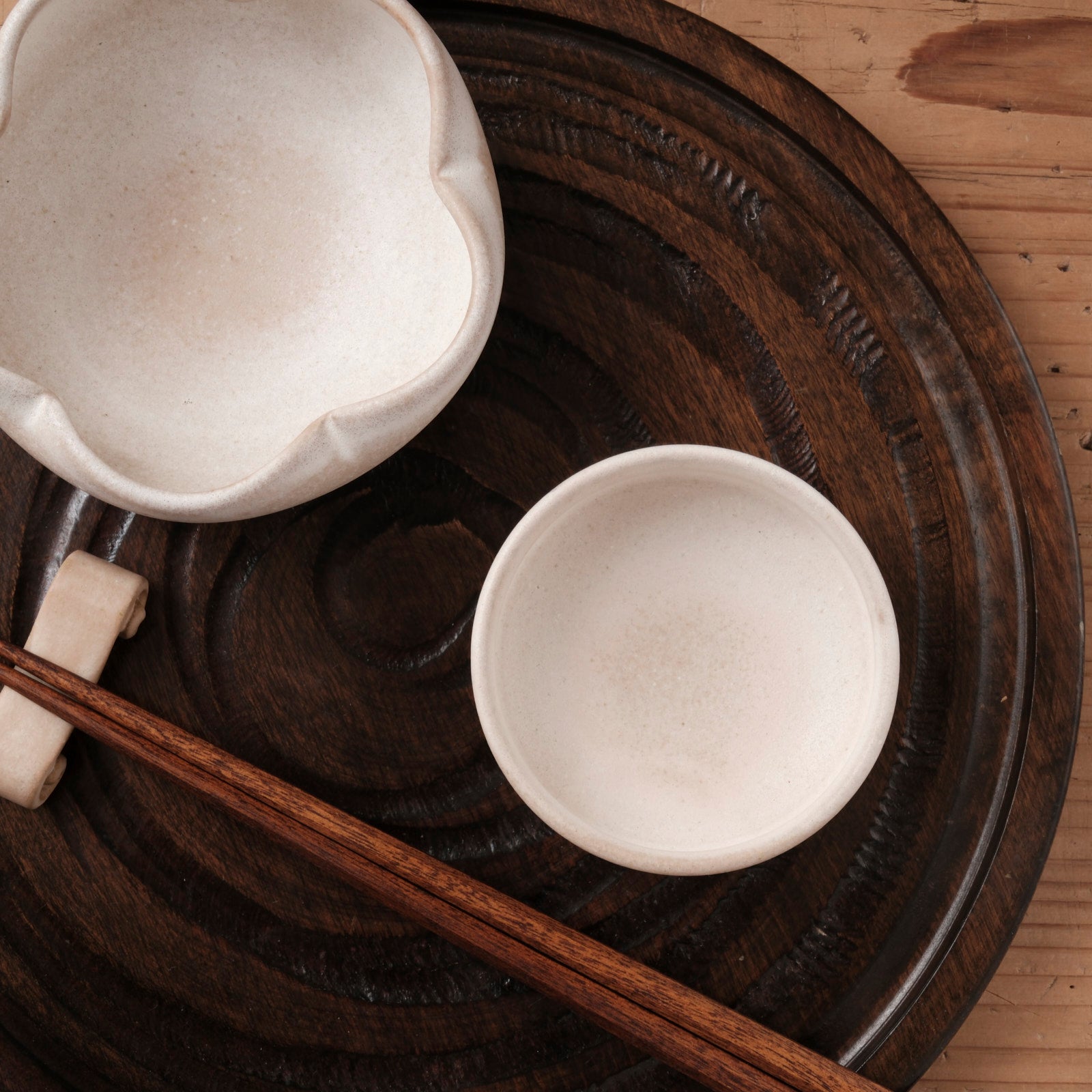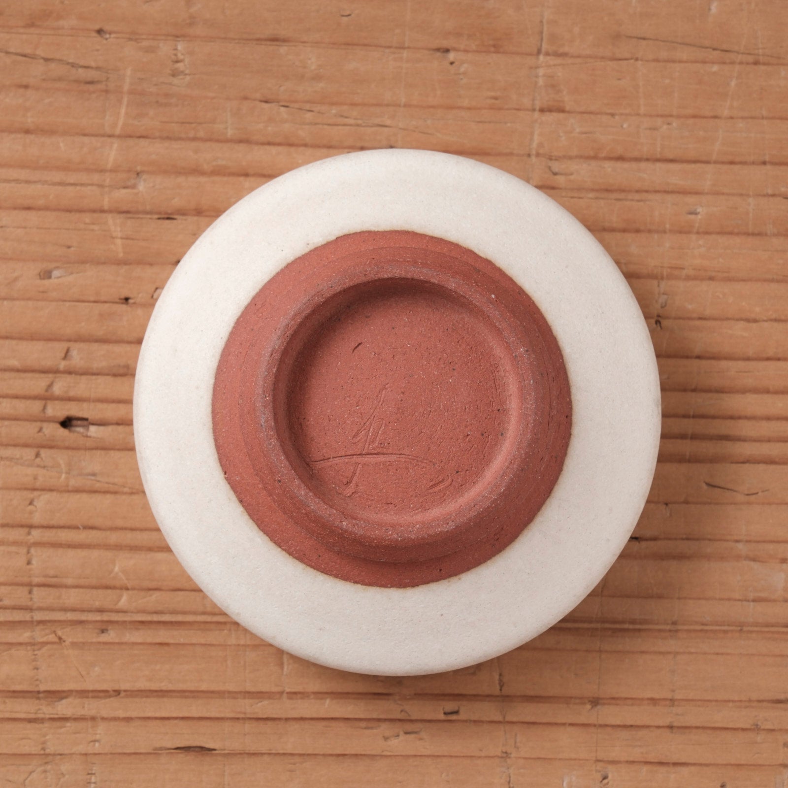 装飾を抑えたシンプルな円形だからこそ、縁のラインや厚みのわずかな揺らぎに、手仕事ならではの表情が現れています。