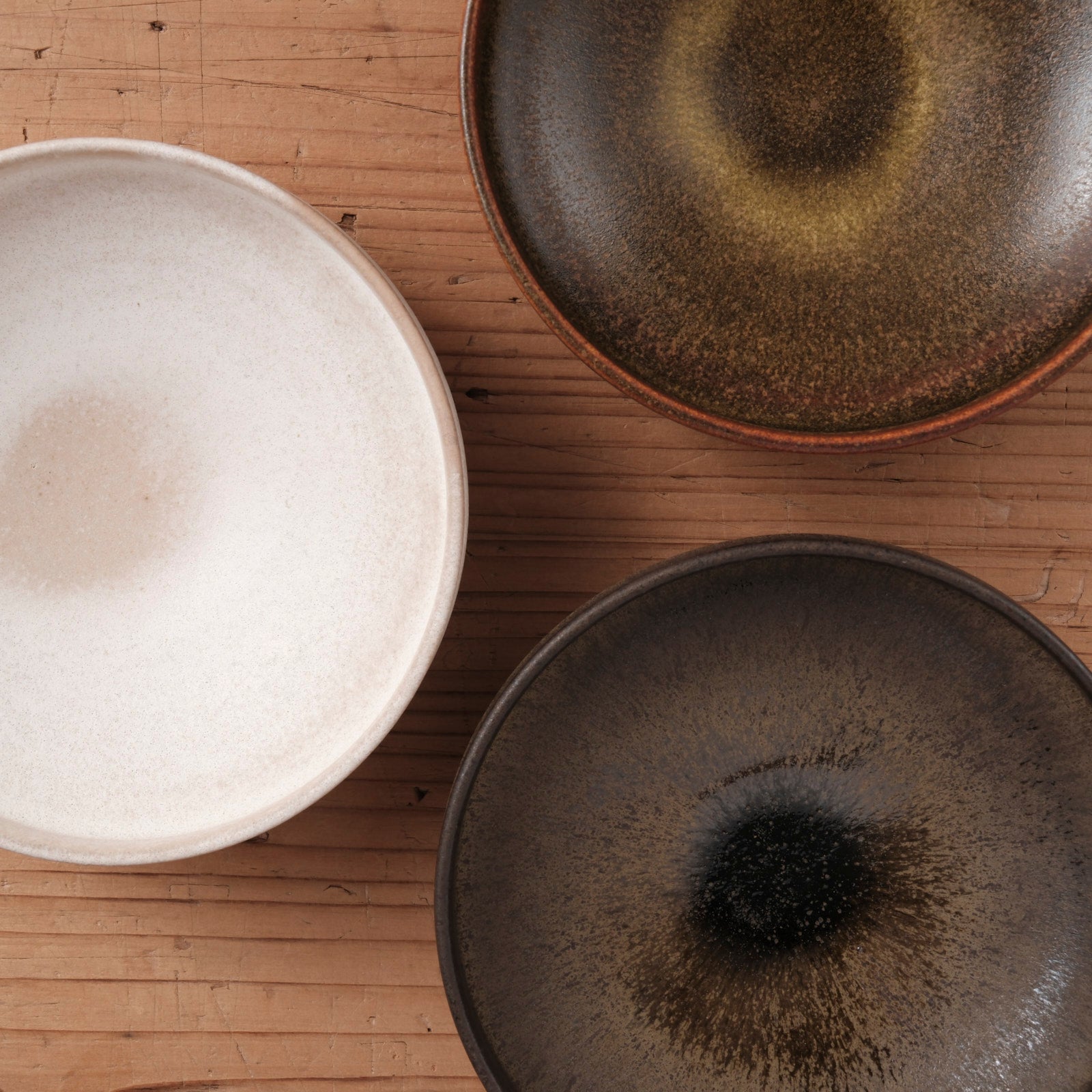 - 陶磁器という素材の特性上、貫入や鉄分の現れ、細かな穴(ピンホール)なども見られる場合がございます。これらは、素材と制作工程から生まれる自然な表情の一部です。