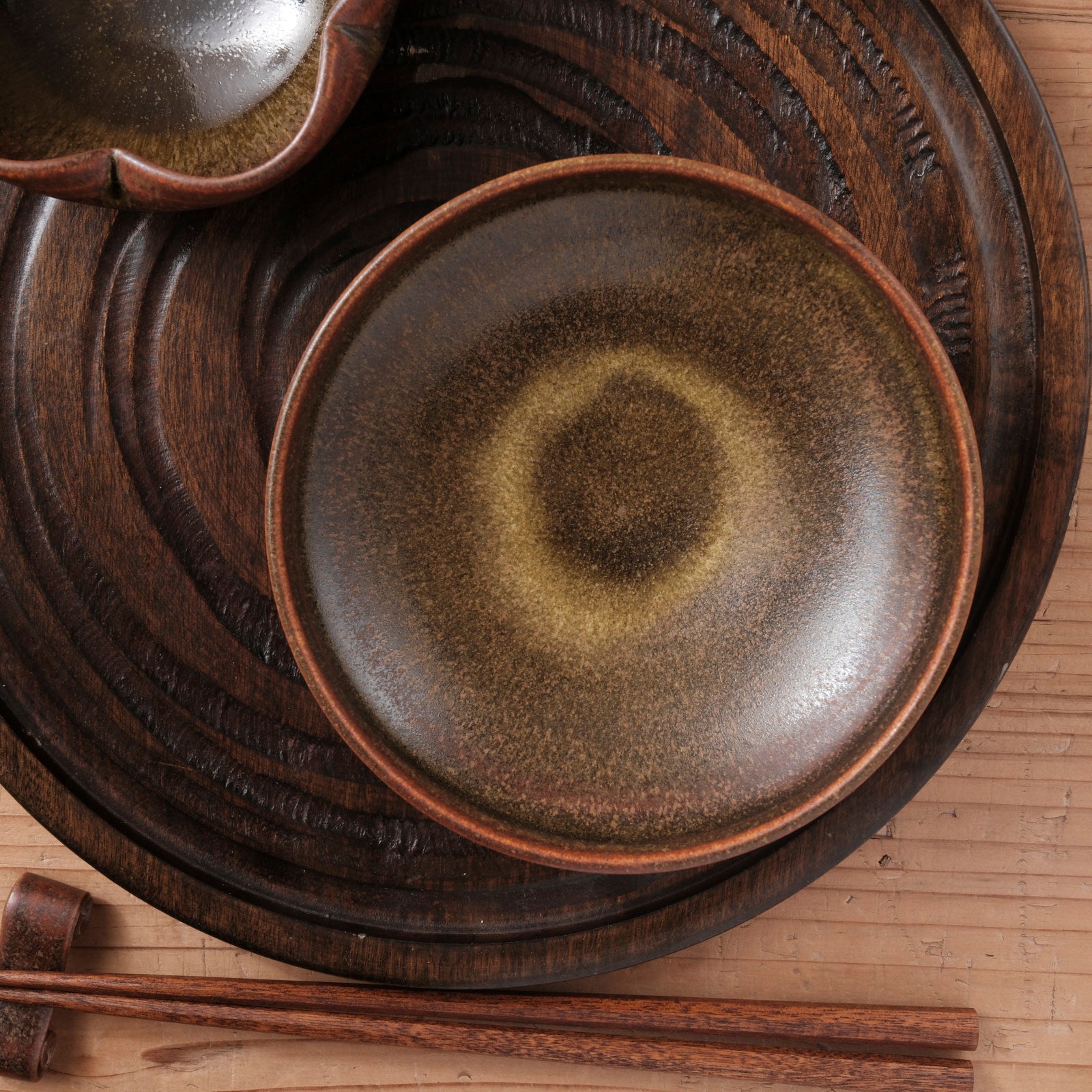 窯の中で生まれる炎と温度の揺らぎによって現れた、蕎麦釉の流れと窯変。