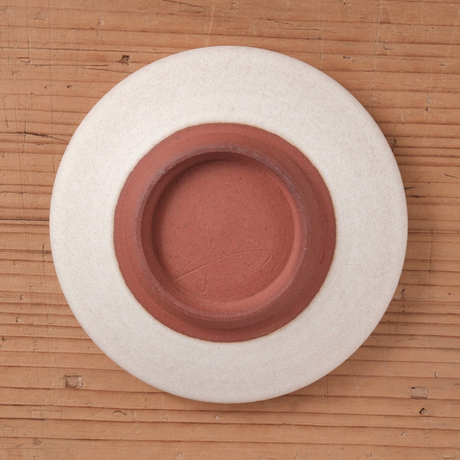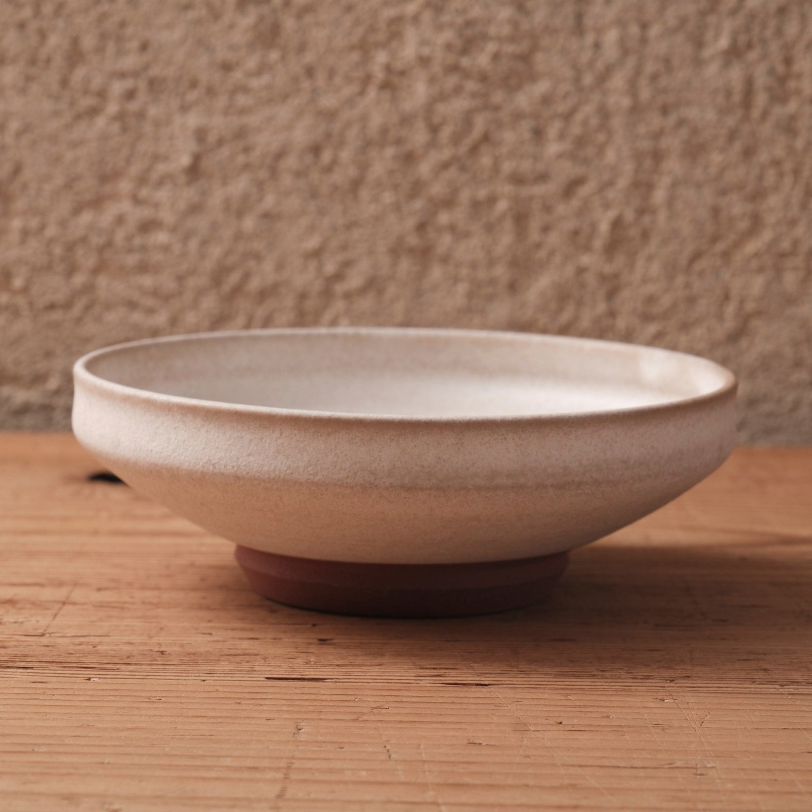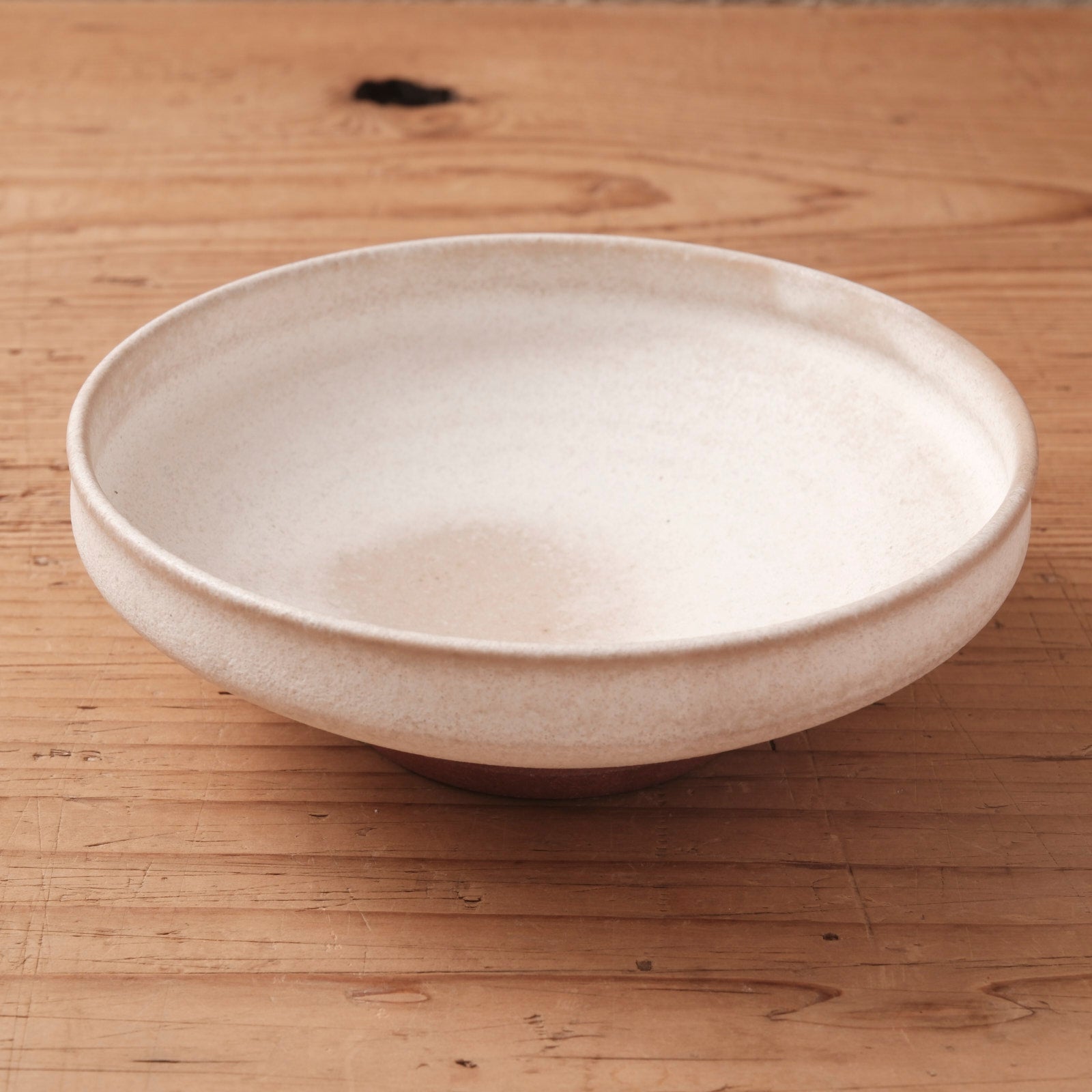 赤土の素地に掛けられた白砂釉が、やさしく景色をつくる四寸半の盛鉢です。