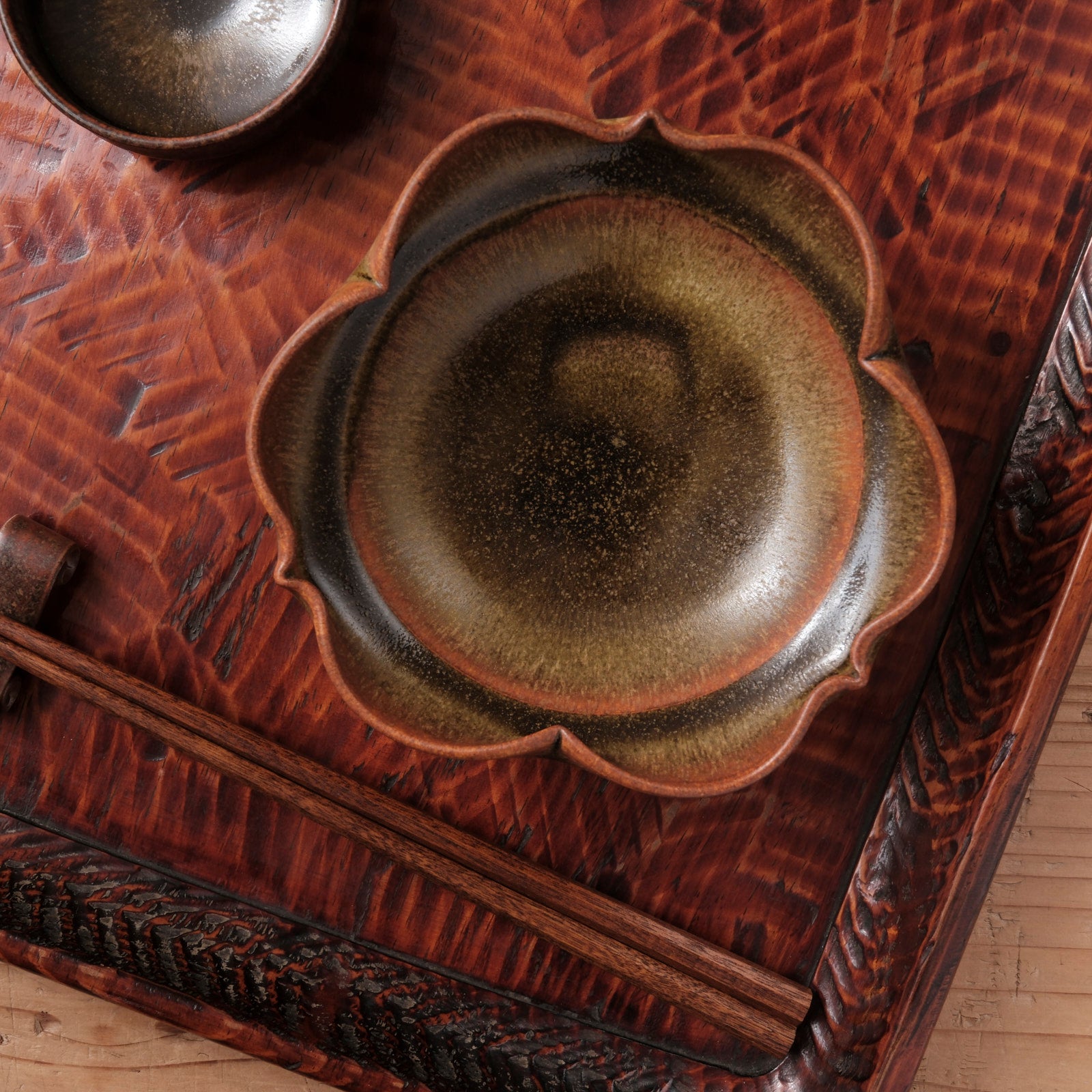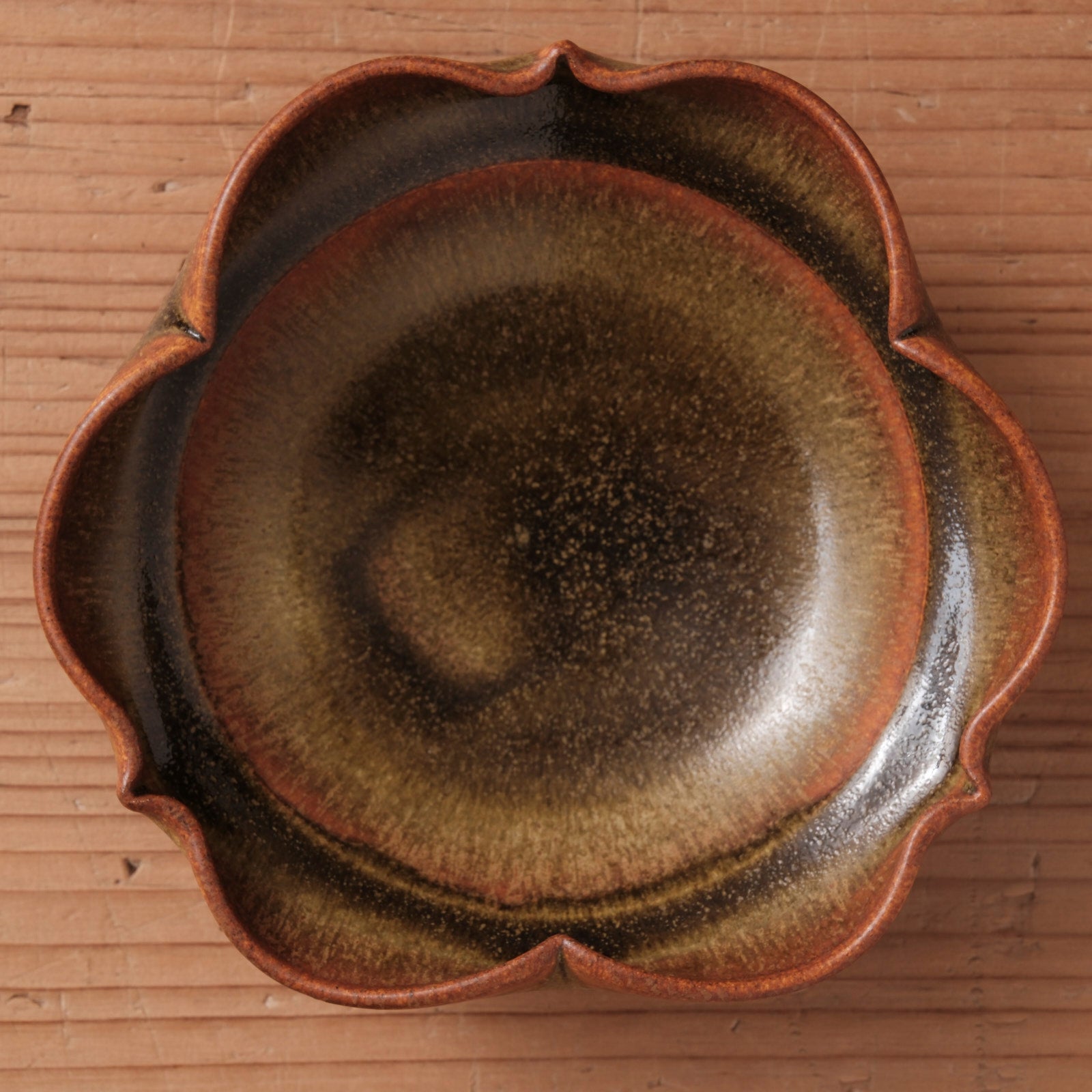 [ 北側 雄一 ] 平向付(稜花3弁) 窯変蕎麦釉