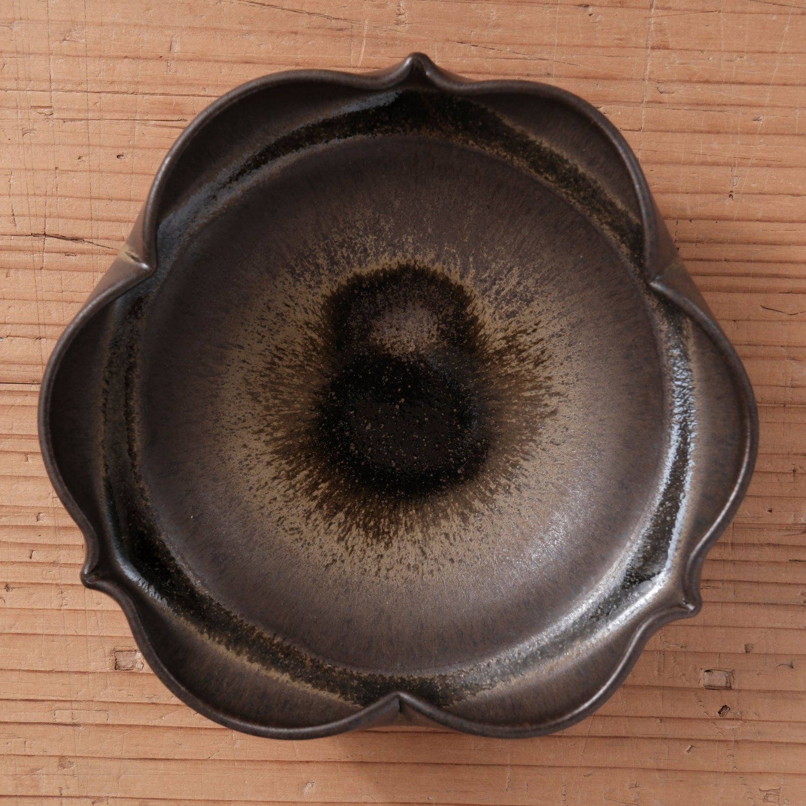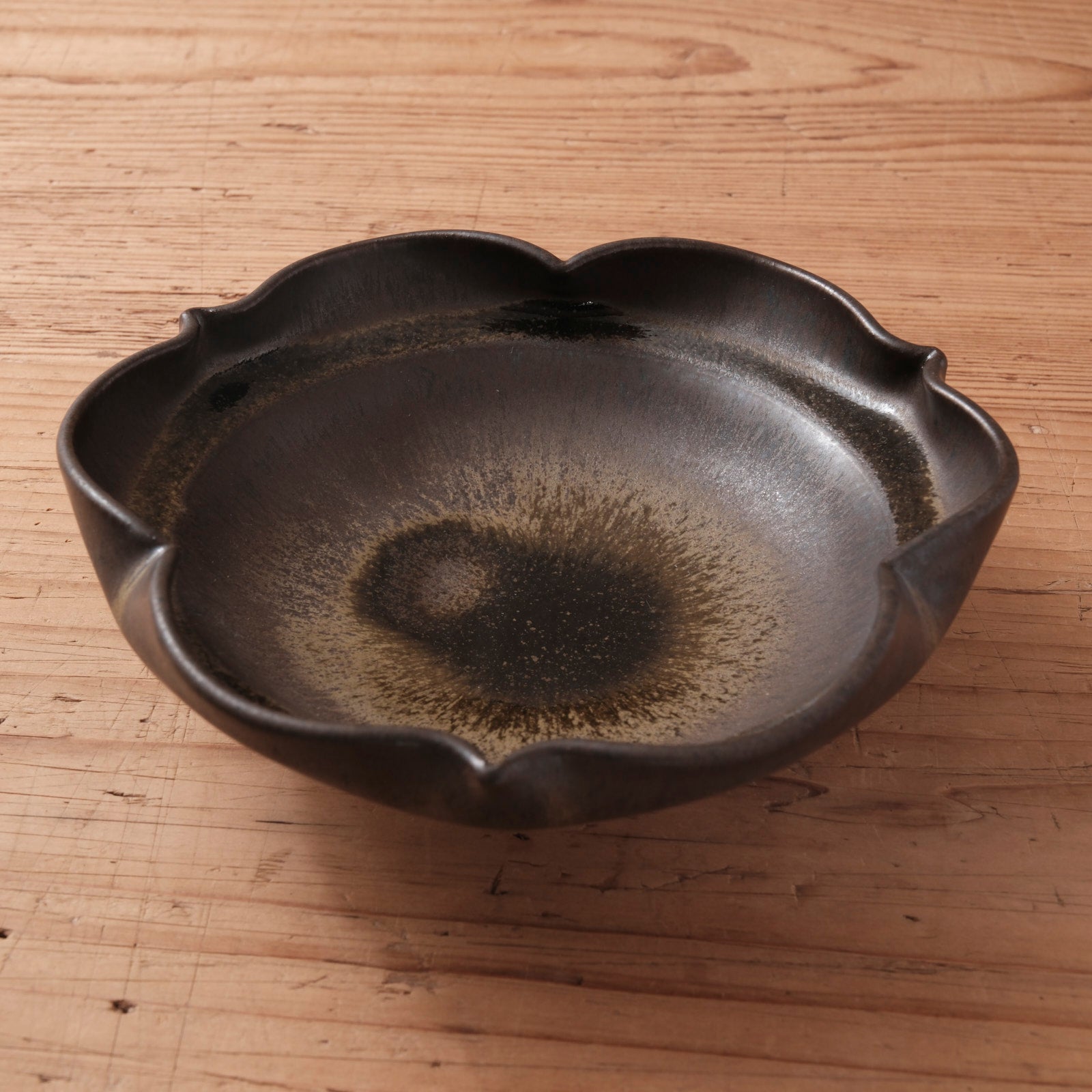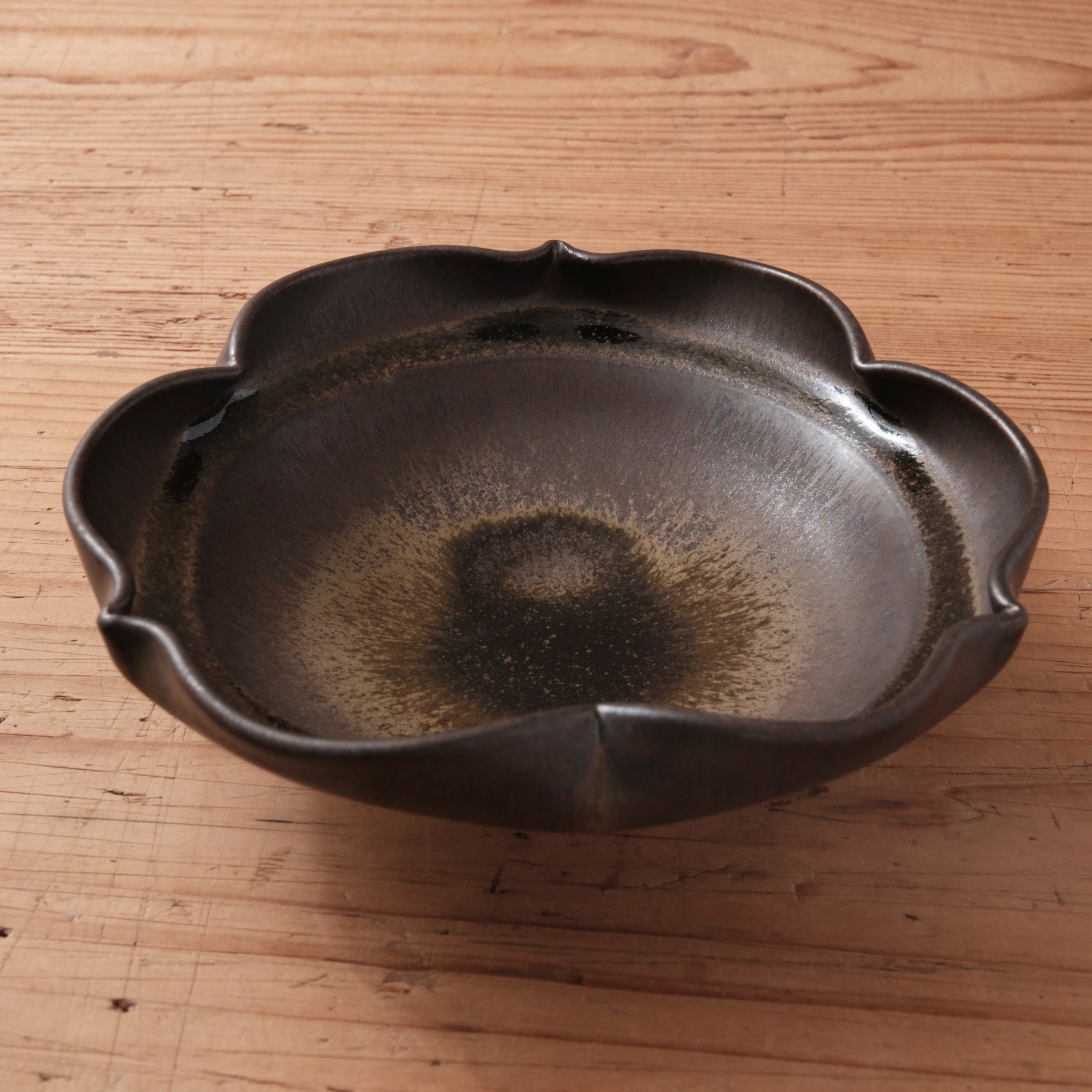 [ 北側 雄一 ] 平向付(稜花3弁) 窯変黒釉