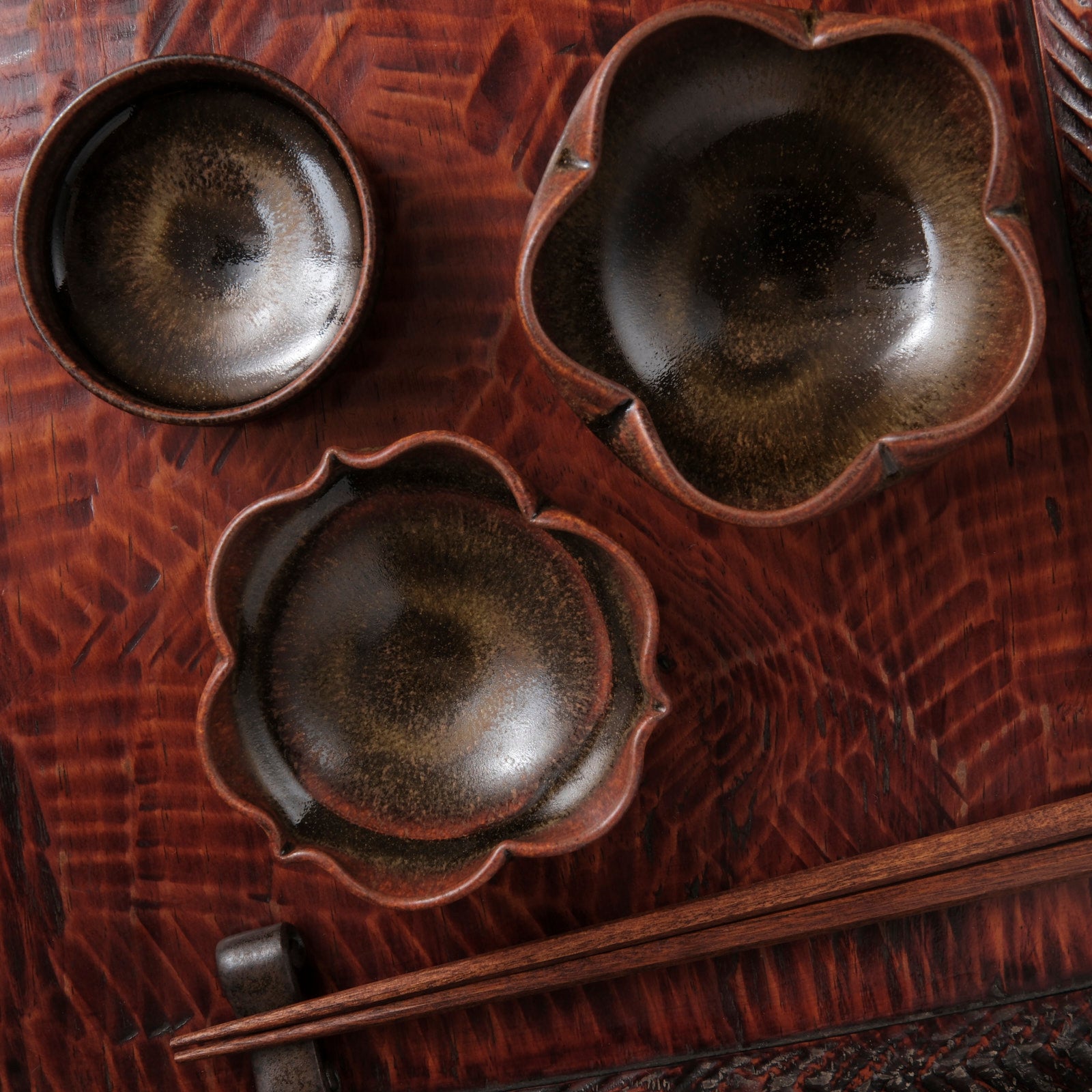 [ 北側 雄一 ] 小付(稜花3弁) 窯変蕎麦釉