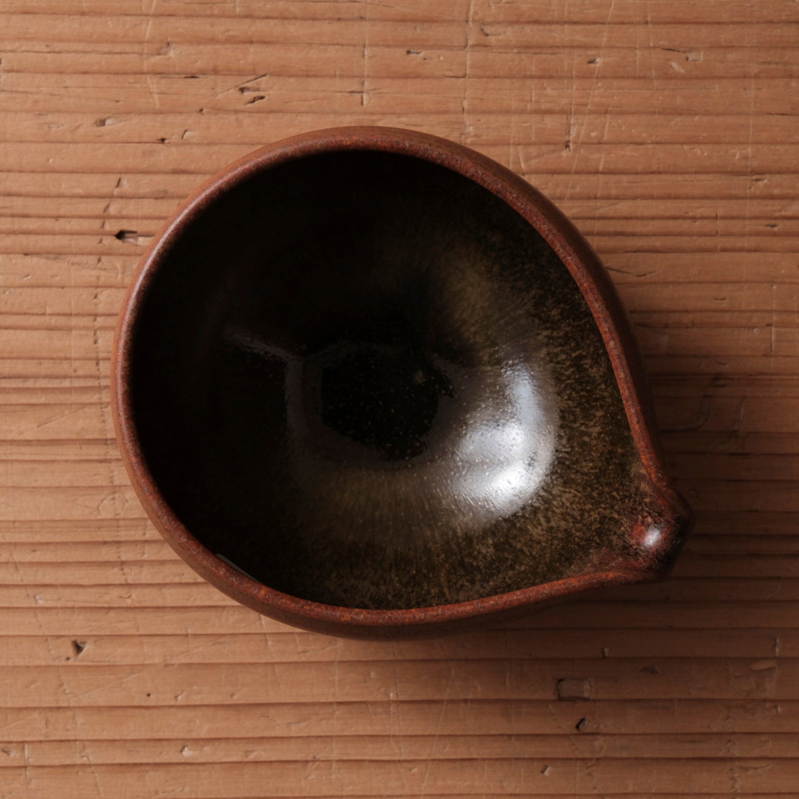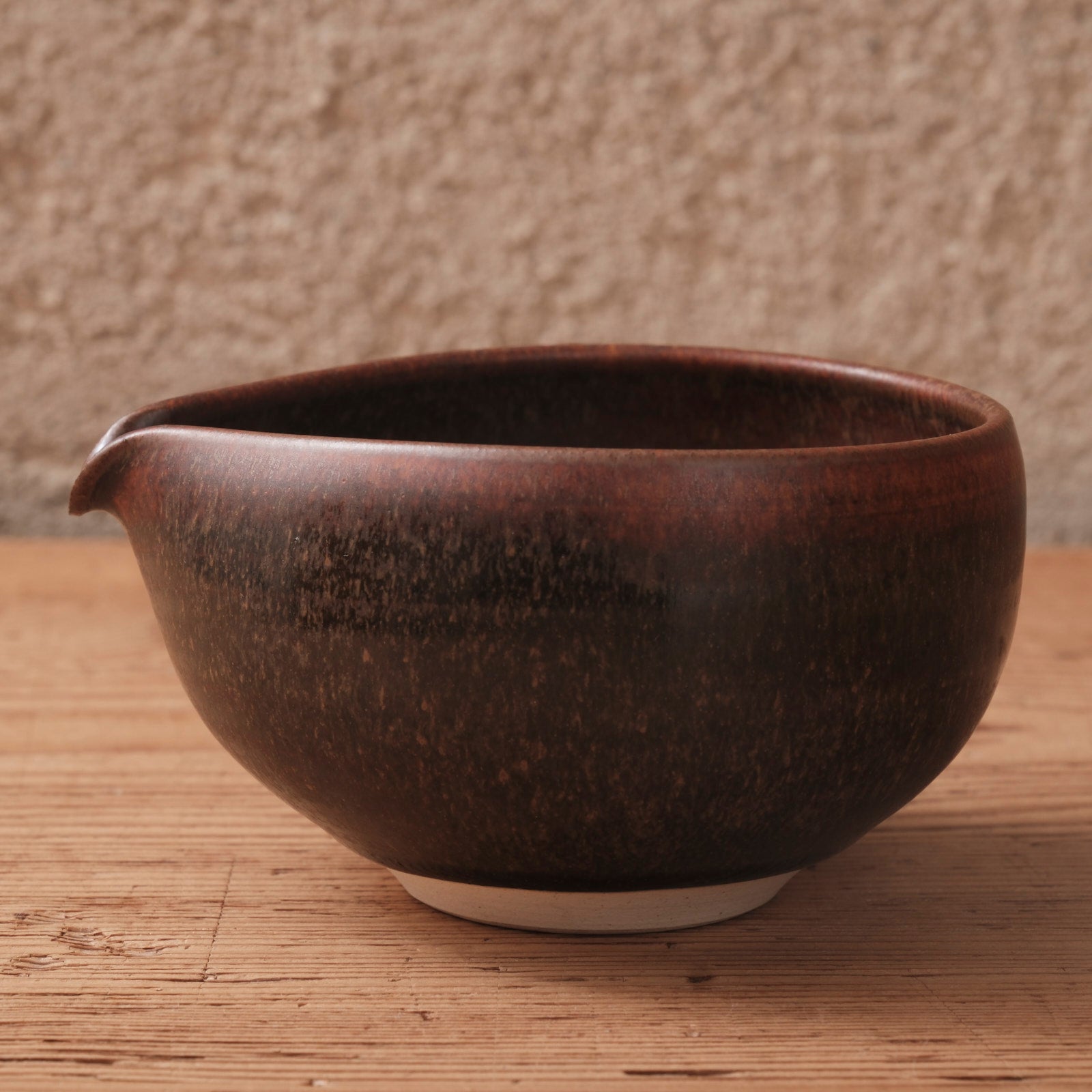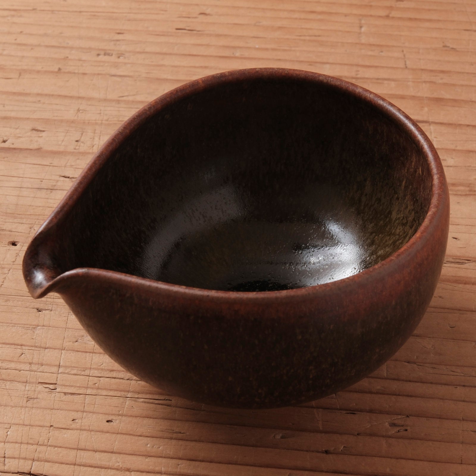深みのある蕎麦釉が施された、端正な佇まいの片口です。