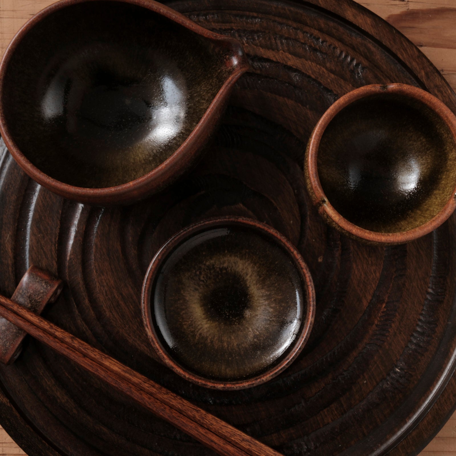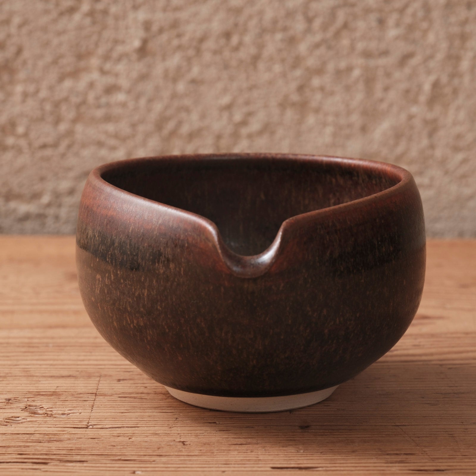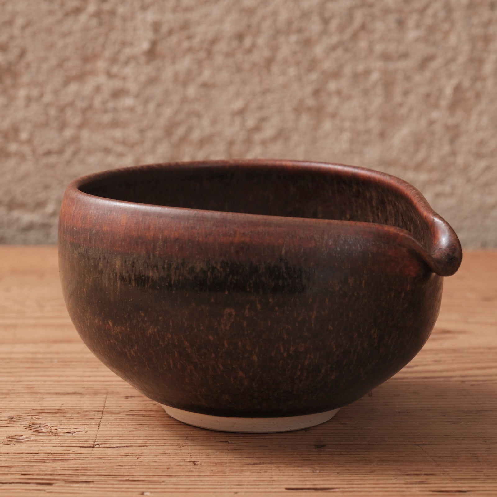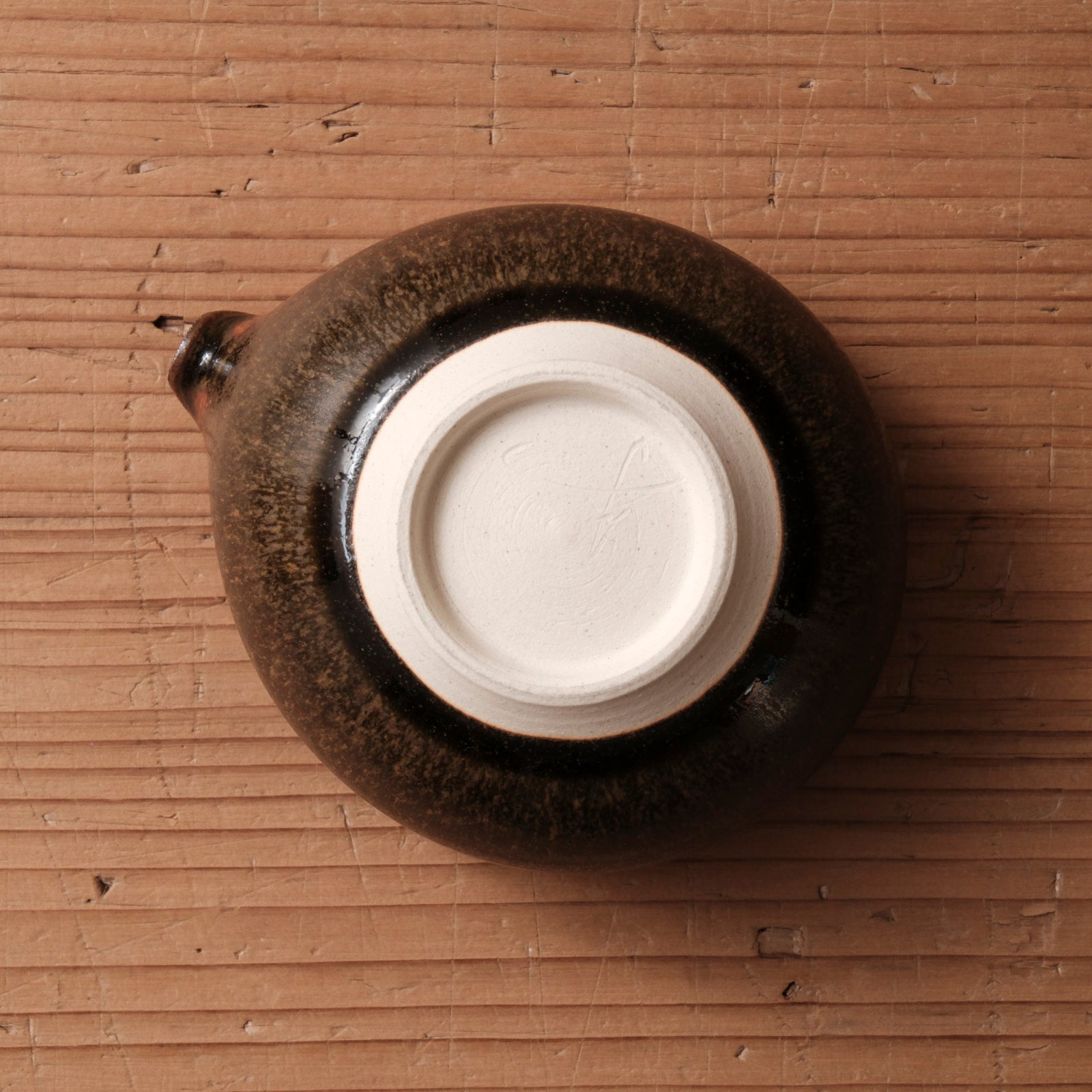 深みのある蕎麦釉が施された、端正な佇まいの片口です。
