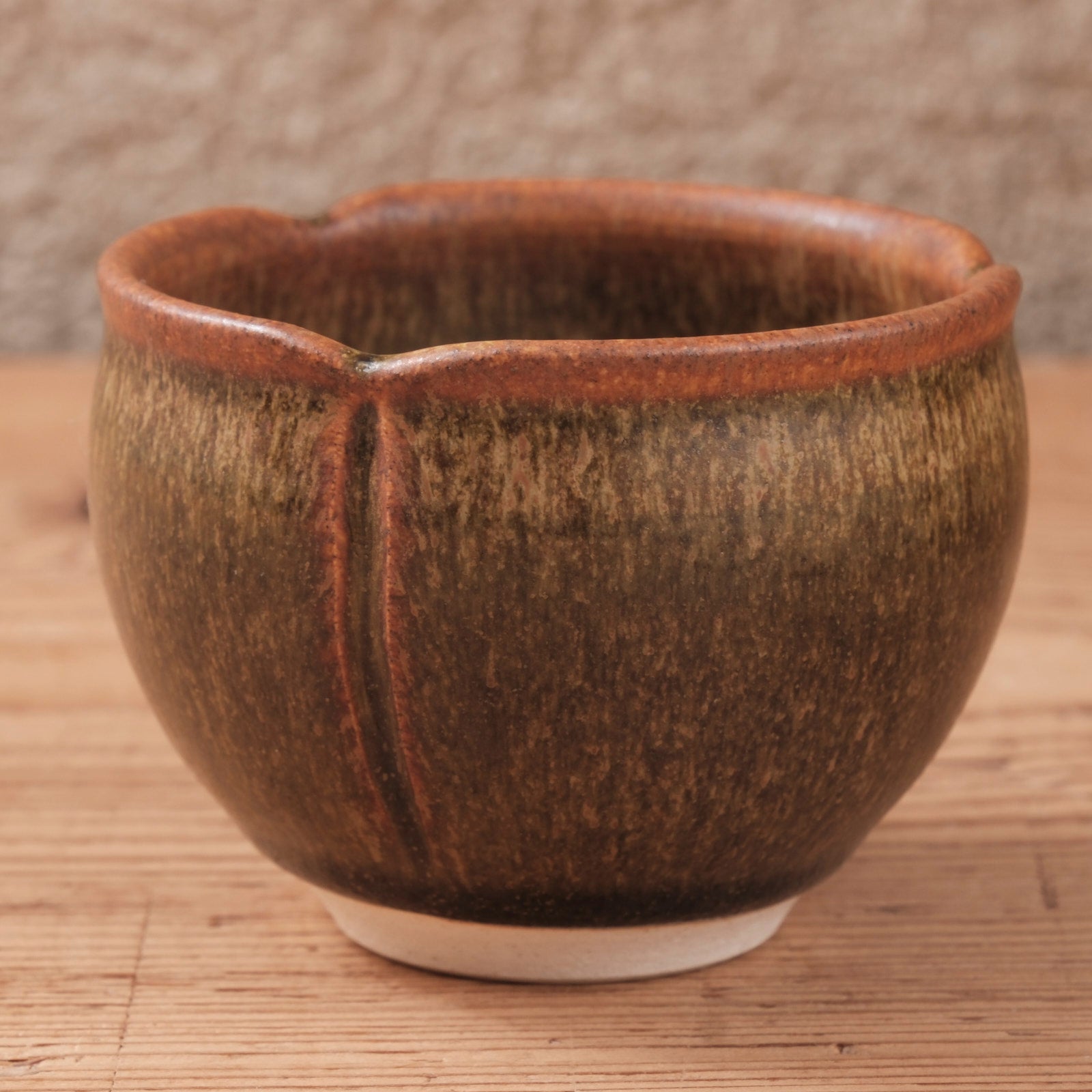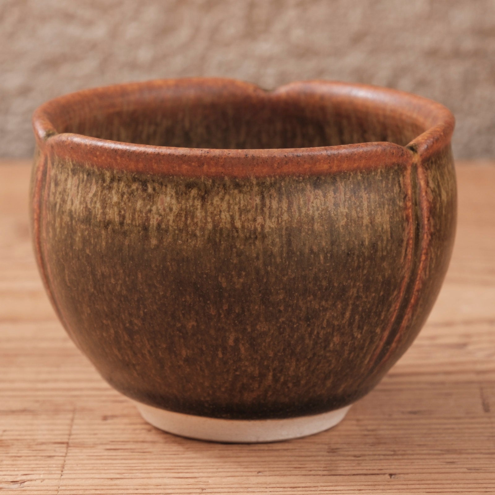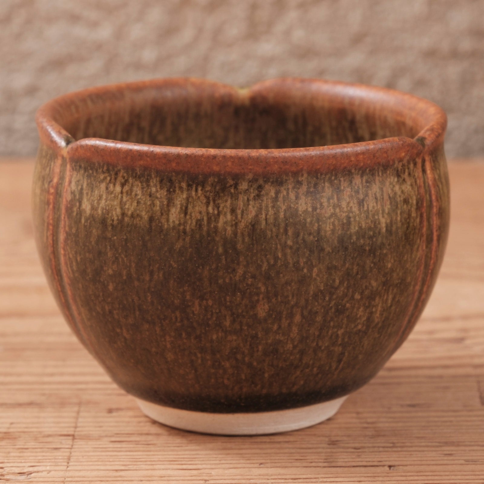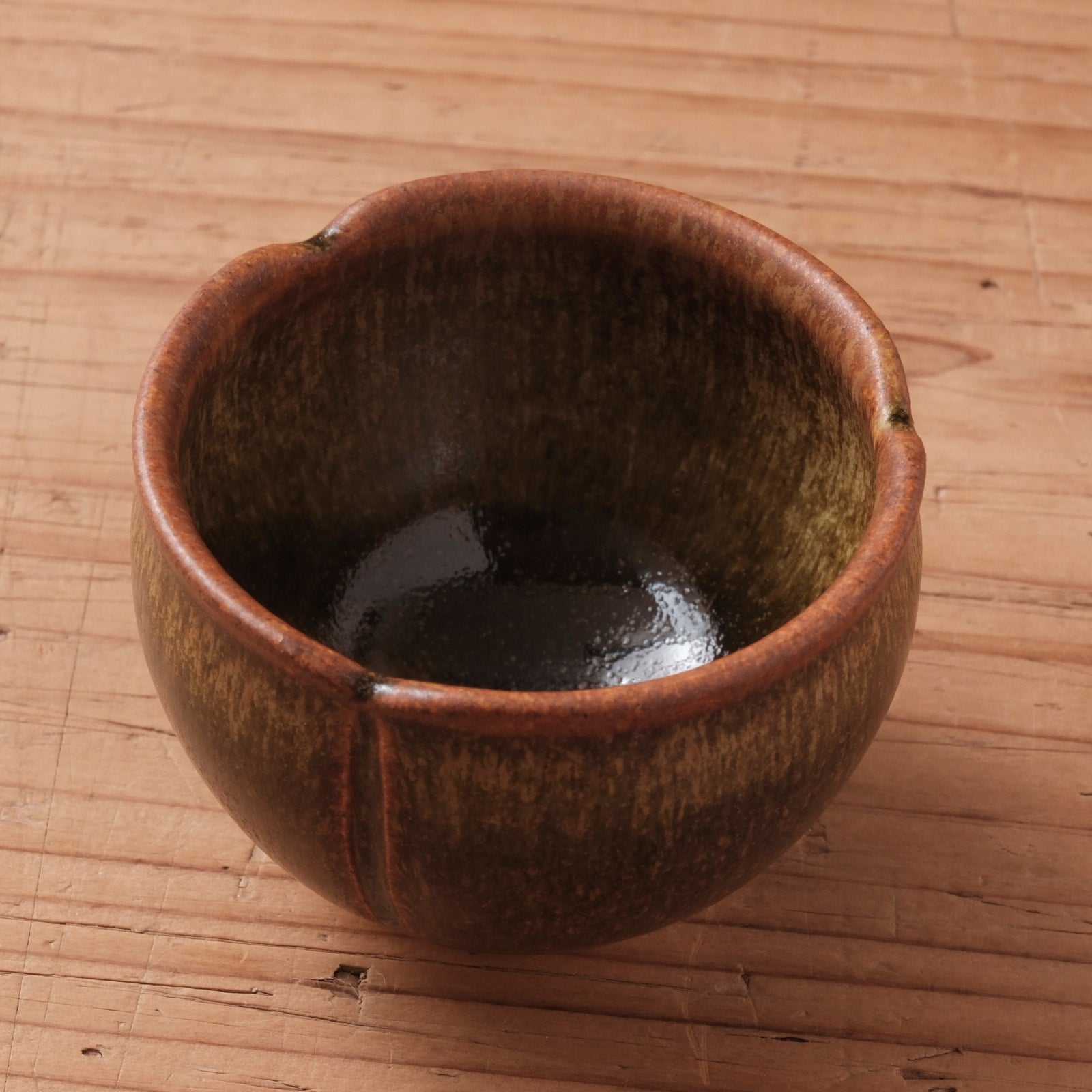 蕎麦釉ならではの深い茶色と、窯の中で生まれた揺らぎが、器全体に静かな表情を与えるぐい呑みです。