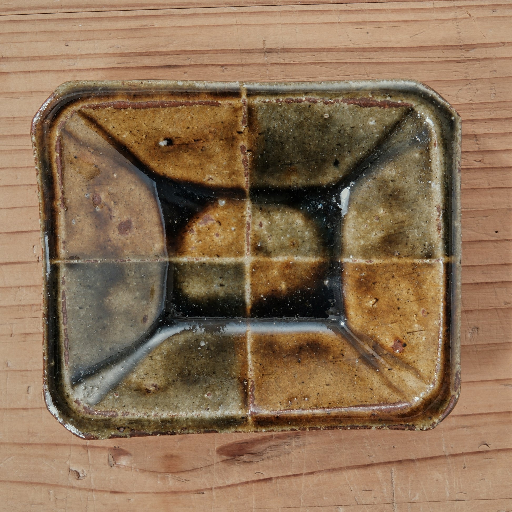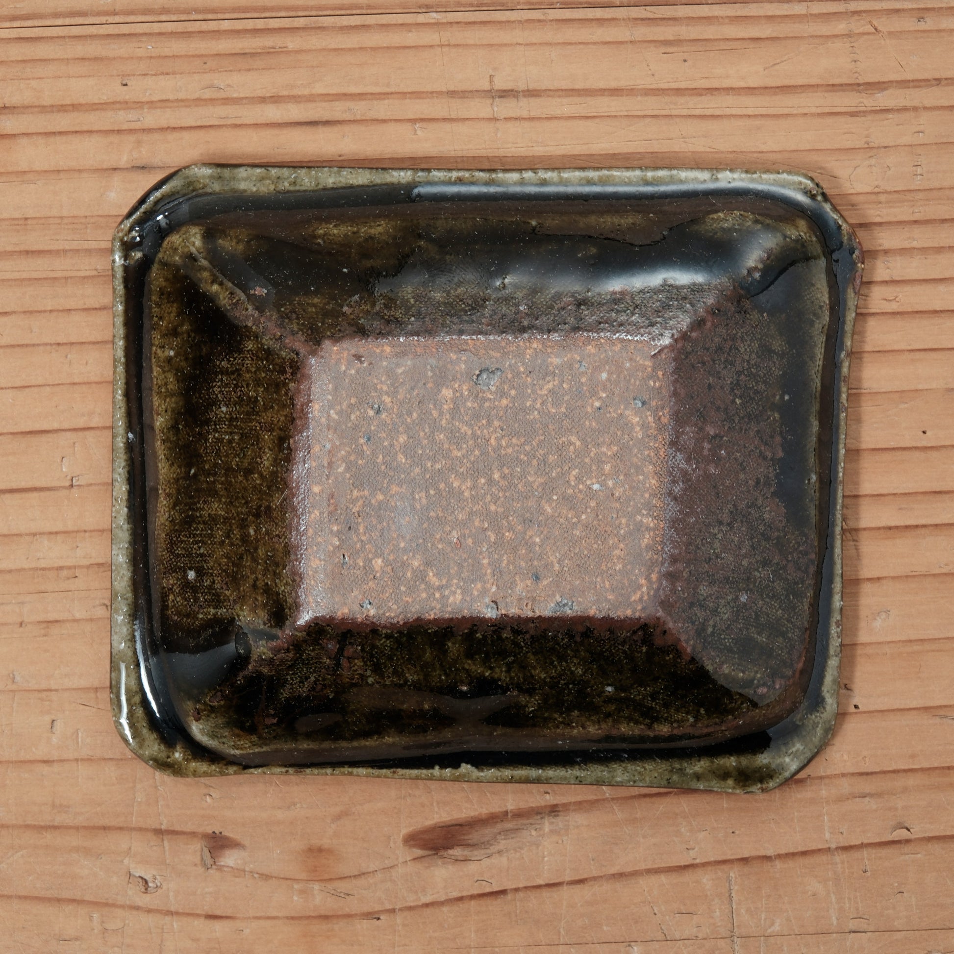 [ 田尾 明子 ] 色釉角小鉢 飴‐織部 幅約11cm