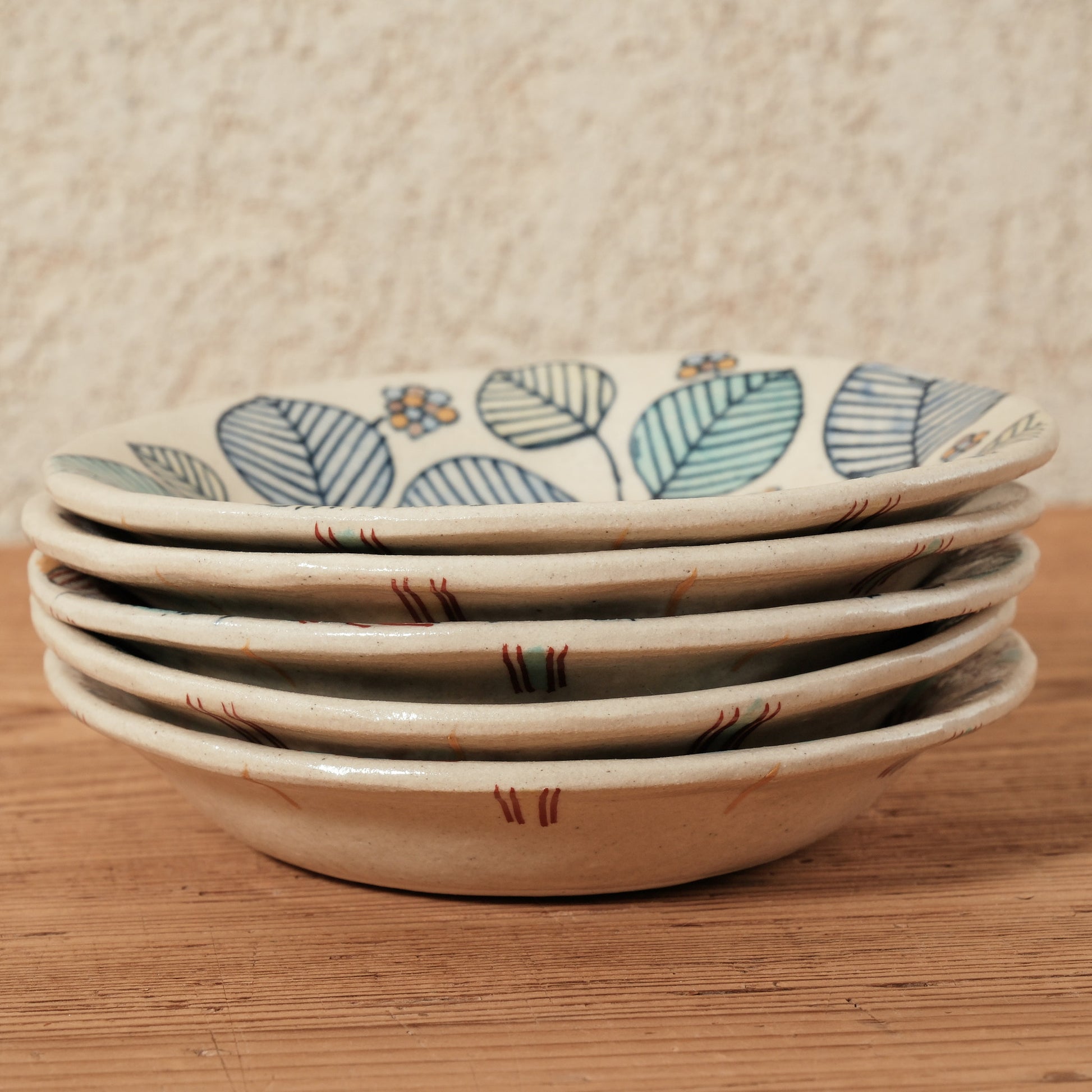 形状が同じでも模様や色使いがそれぞれ異なるのも、「決めすぎない、縛りすぎない」加藤さんの作陶スタイルだからこそ。