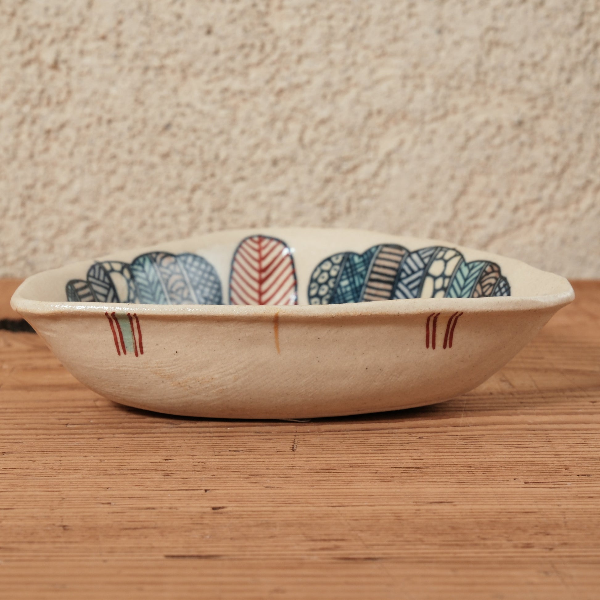 形状が同じでも模様や色使いがそれぞれ異なるのも、「決めすぎない、縛りすぎない」加藤さんの作陶スタイルだからこそ。