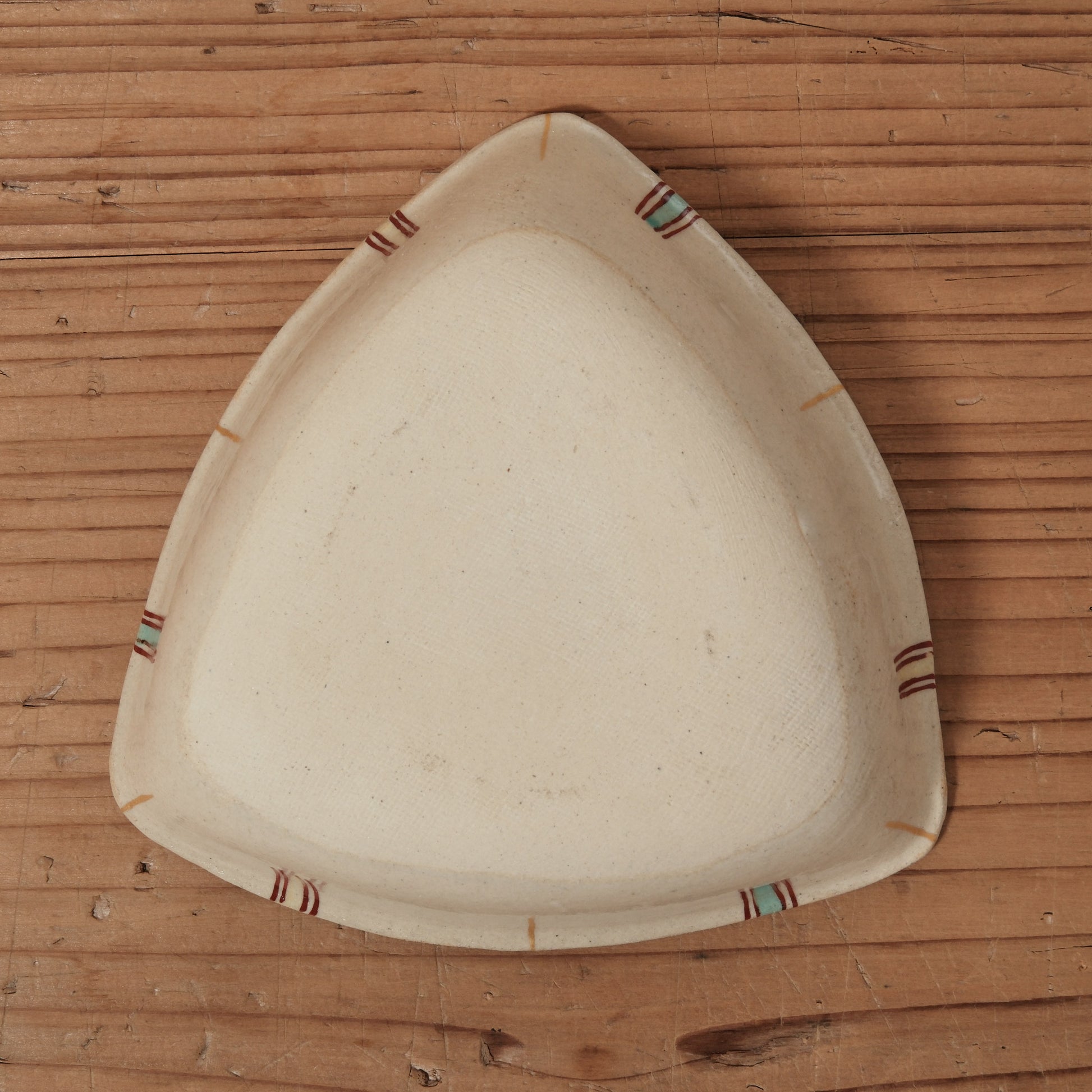 赤絵金彩で彩りされた、少しめずらしい、三角形の小鉢で、