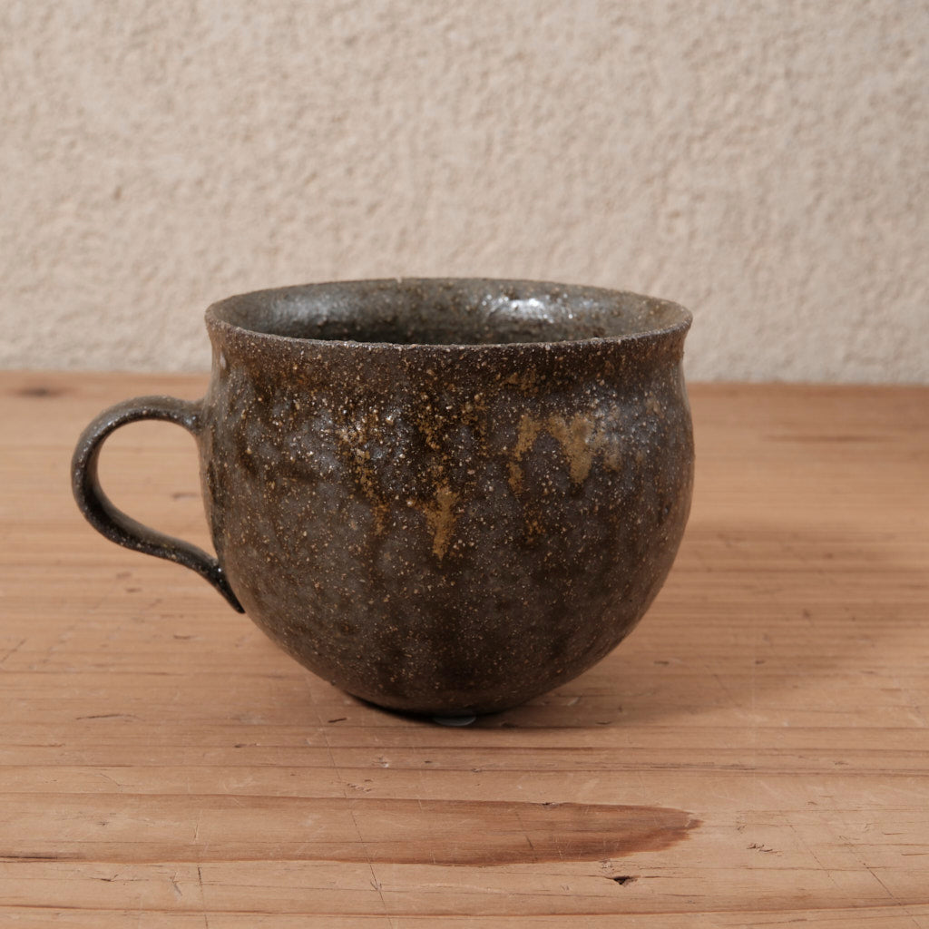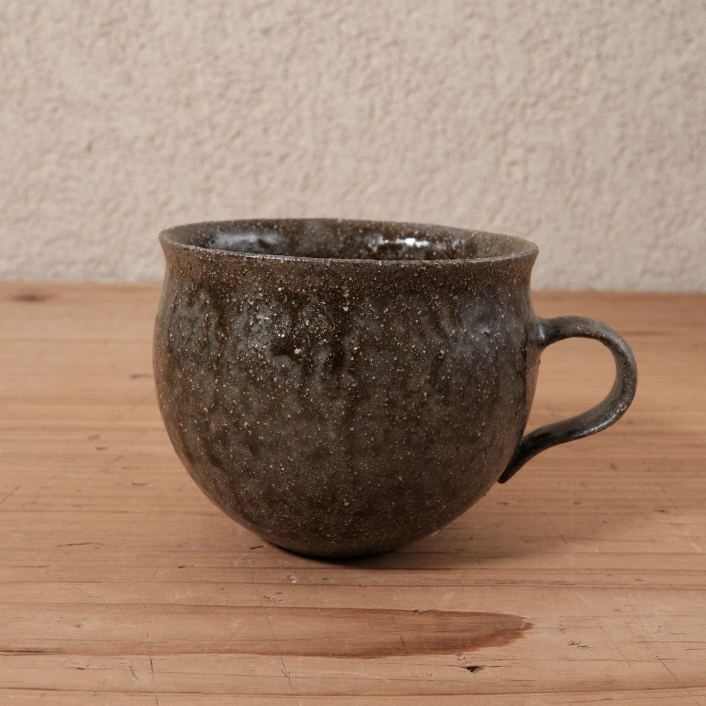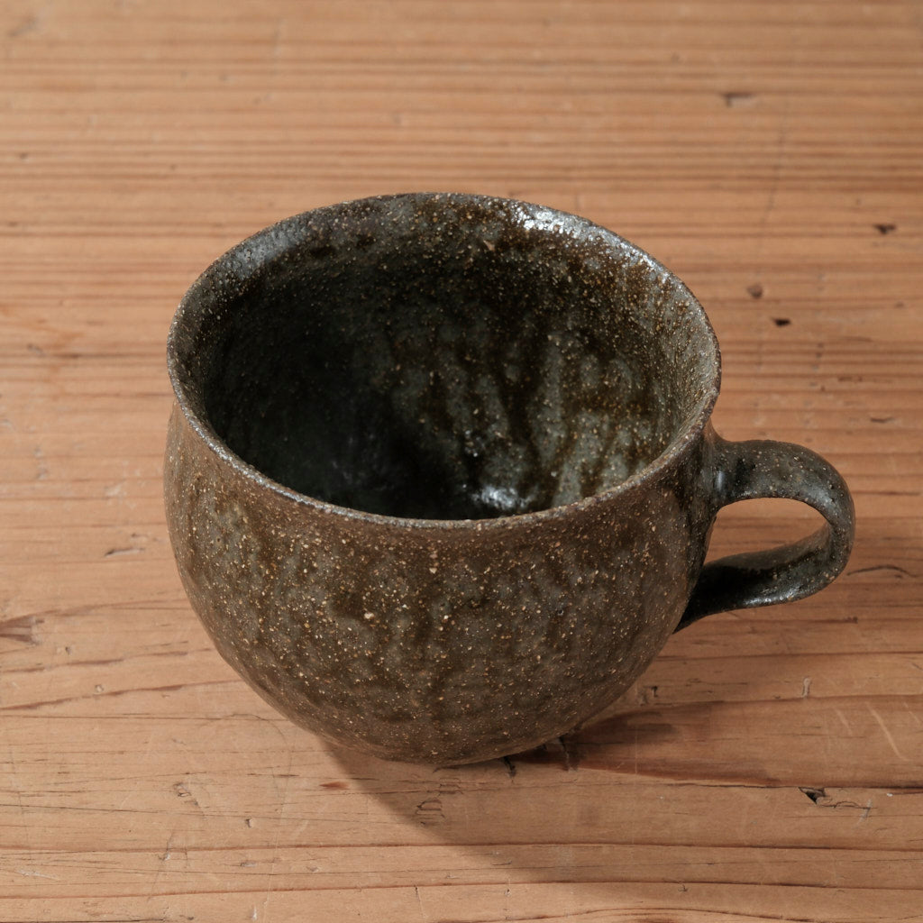 コーヒーの濃い色とも相性がよく、日々の一杯に落ち着きを与えてくれるマグです。