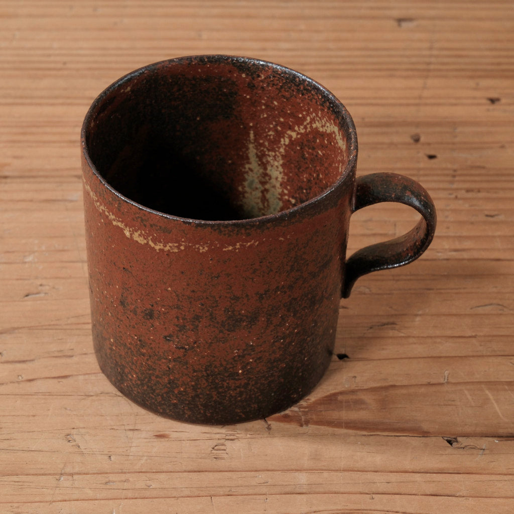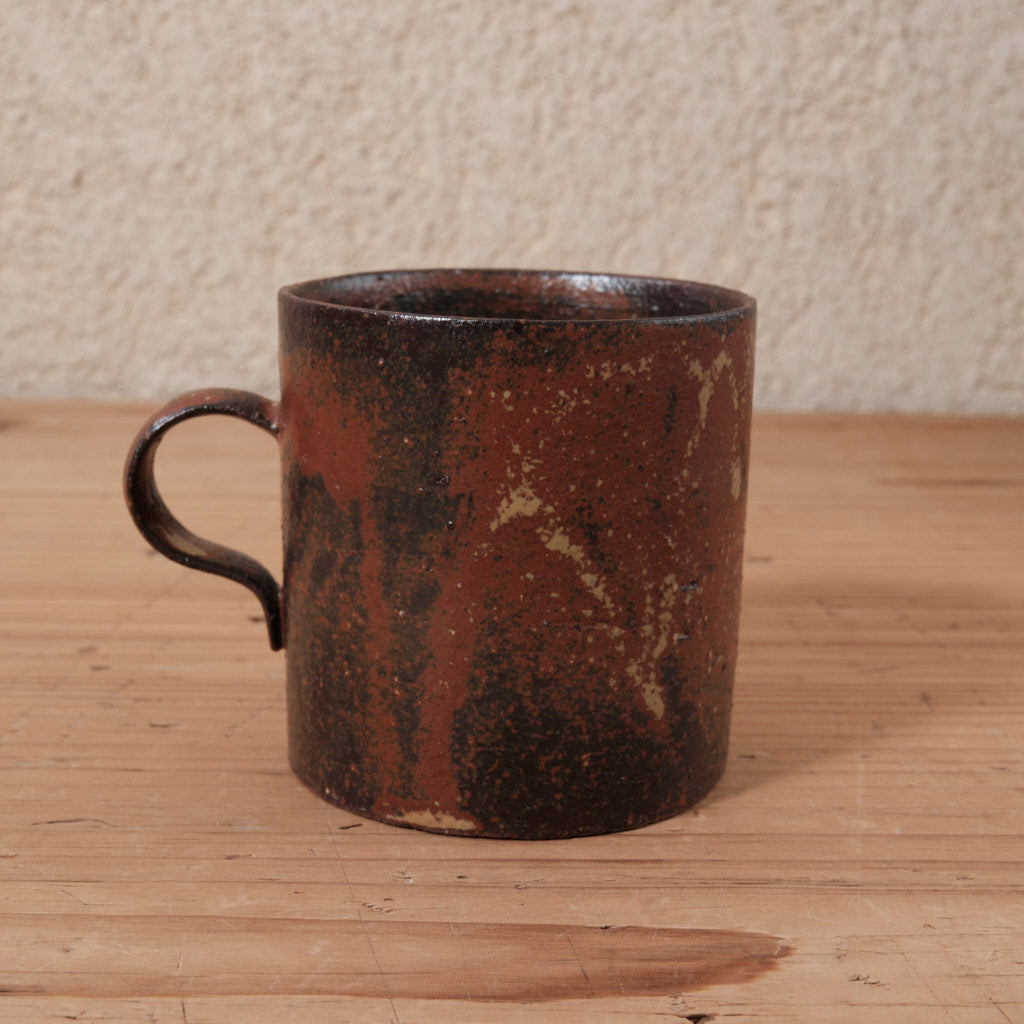 背高泡立草の灰が生む、深い赤褐色のストレートマグ。