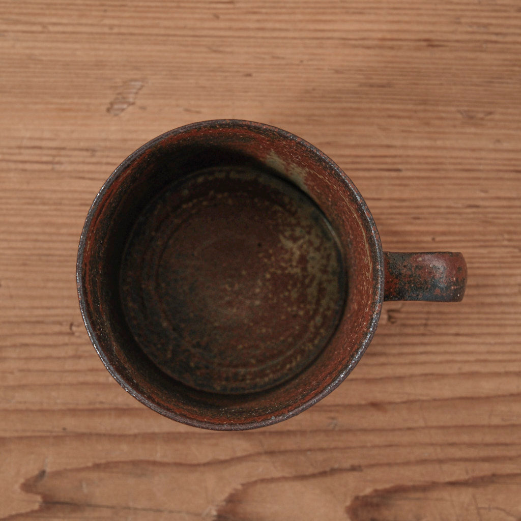 赤みのある釉調が、飲み物の色と響き合い、落ち着いた時間を演出します。