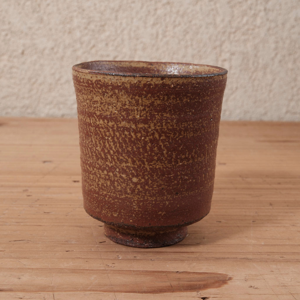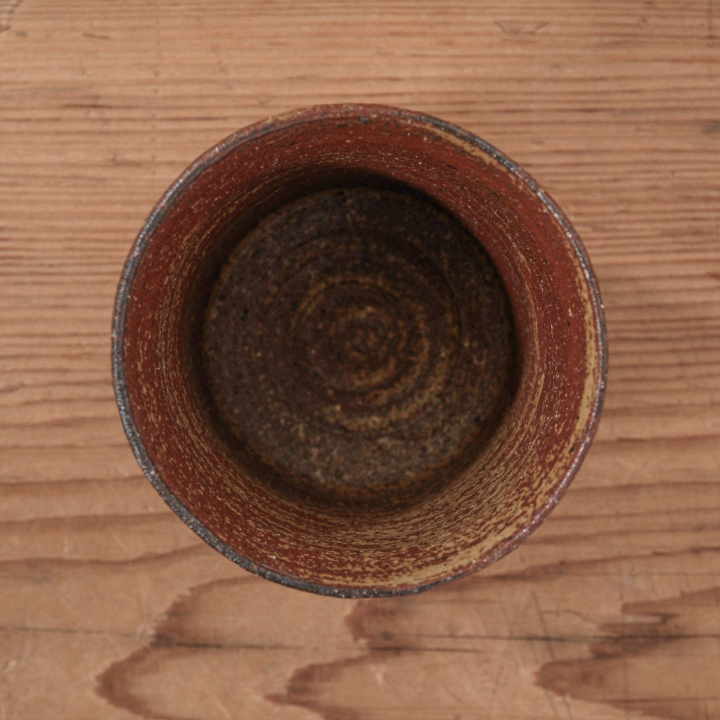 背高泡立草灰が描く、力強い赤褐色の湯呑。