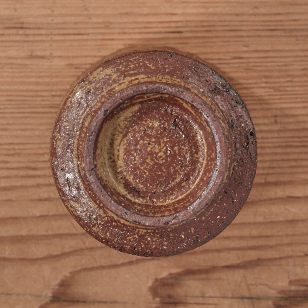 赤褐色を帯びた釉調に、ベージュや黒の粒子が複雑に重なり合う表情。炎の当たり方によって生まれる濃淡や斑が、ひとつひとつ異なる景色を描きます。ひまわりや竹釉の穏やかさとは対照的な、力強い存在感が魅力です。