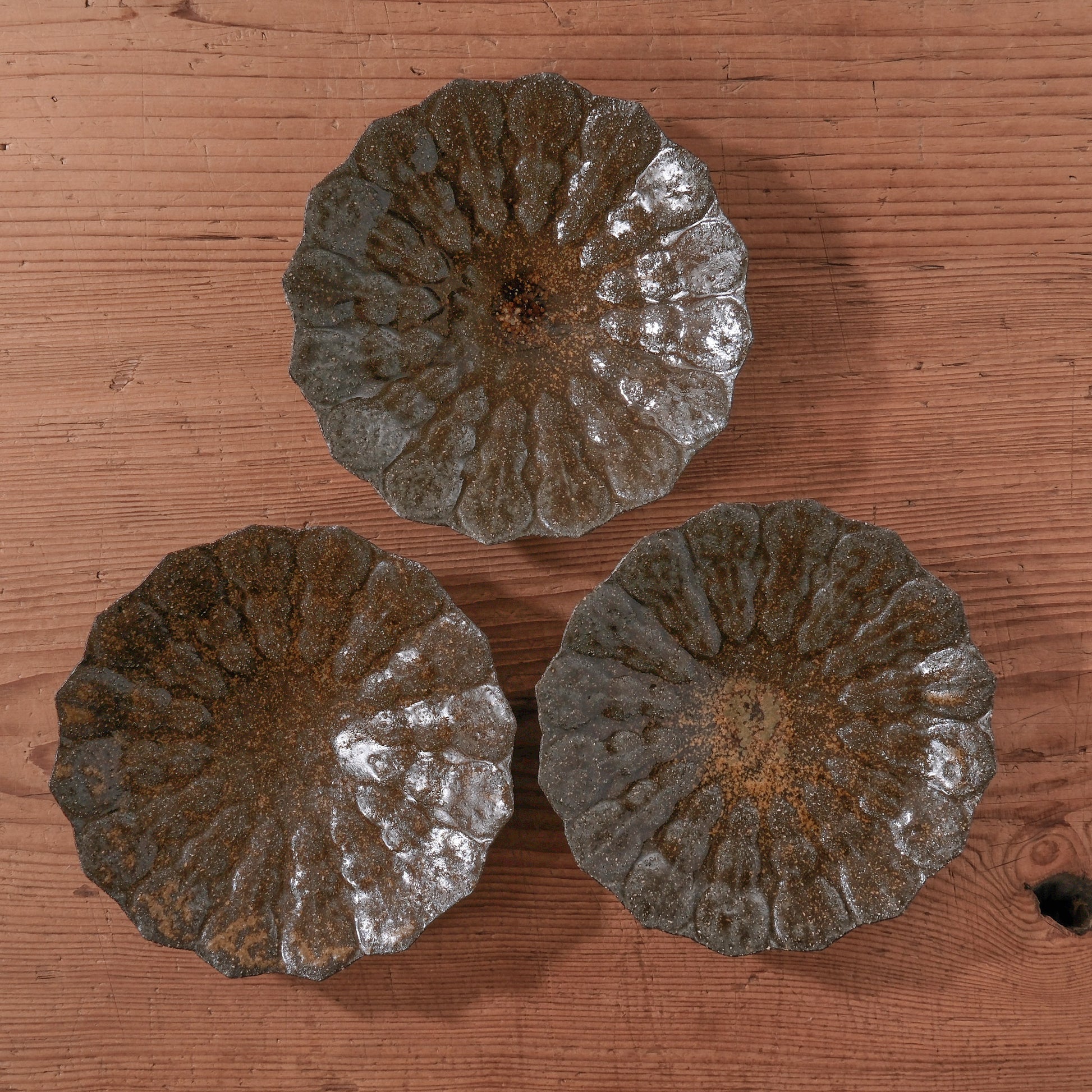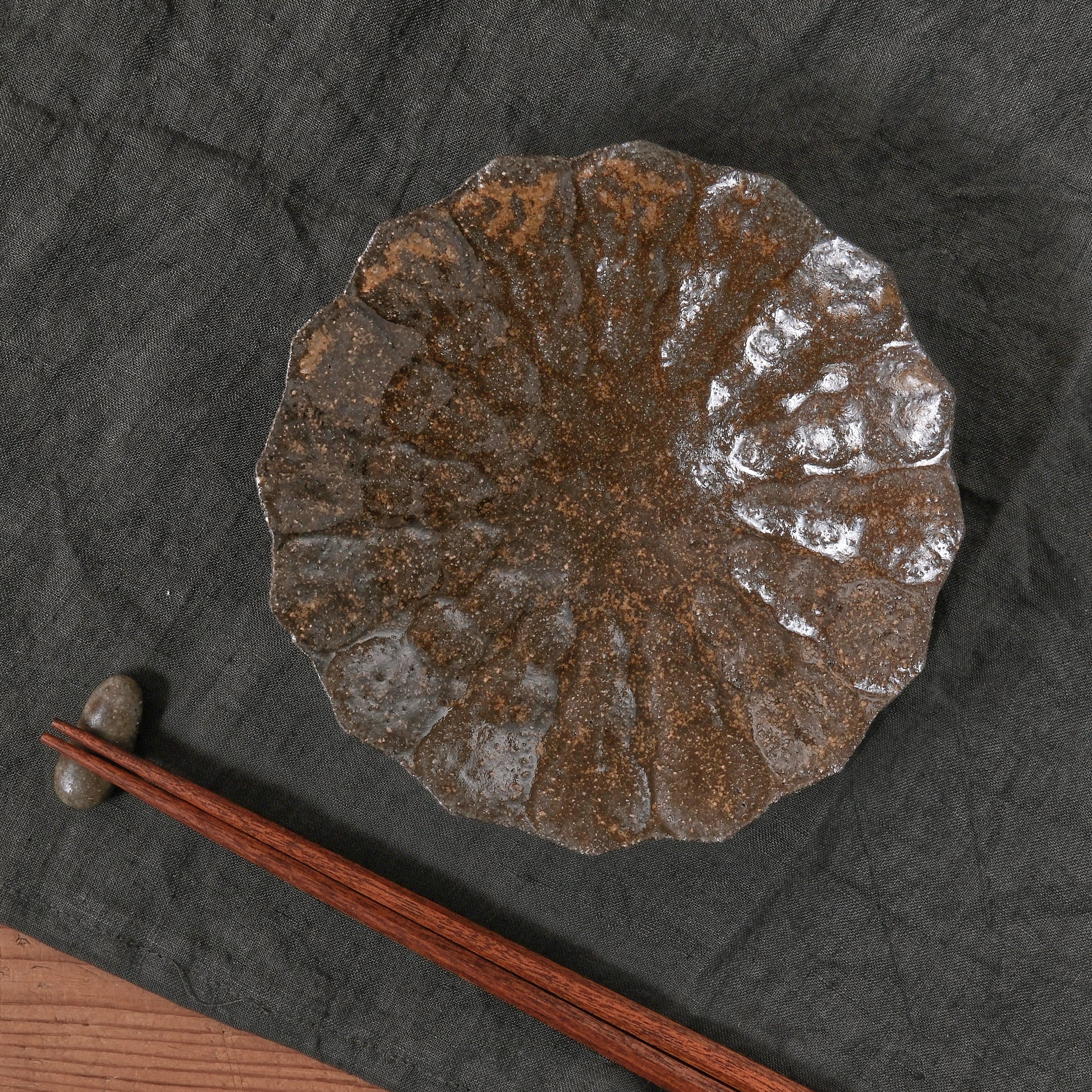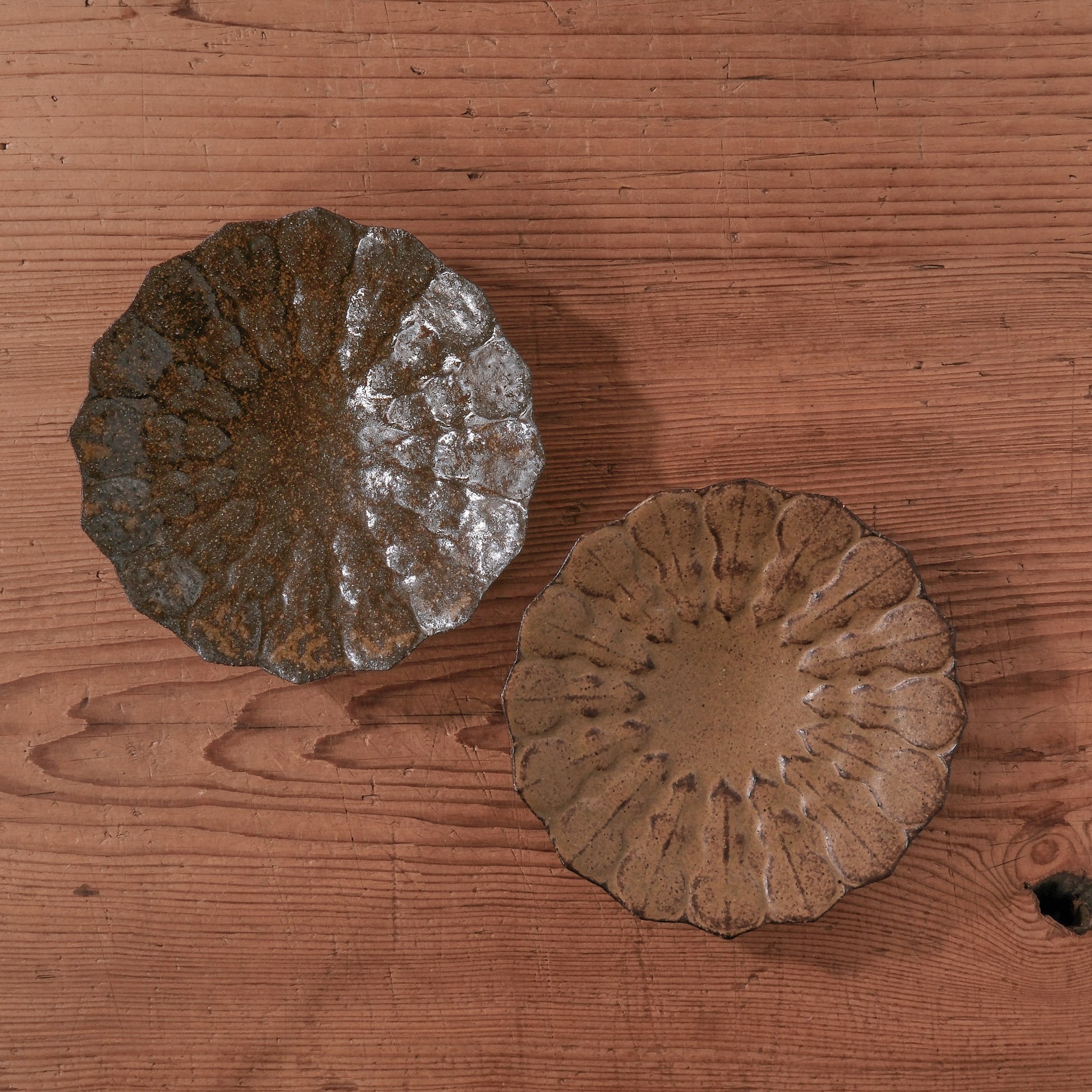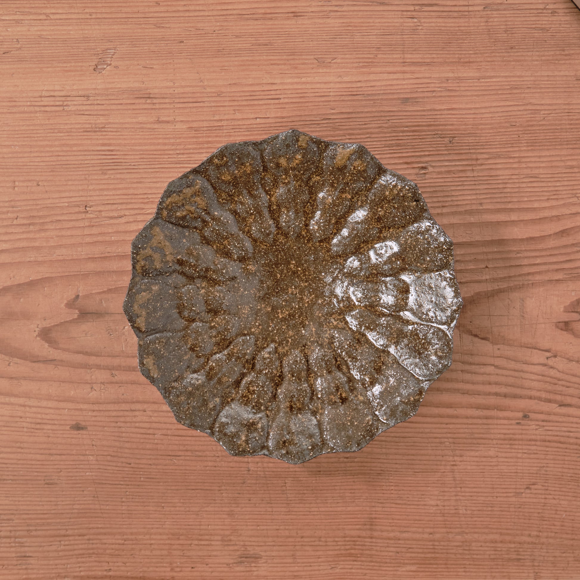 落ち着いた色合いの中に、釉薬の揺らぎが奥行きをつくり、盛りつけたものを自然と引き立てます。