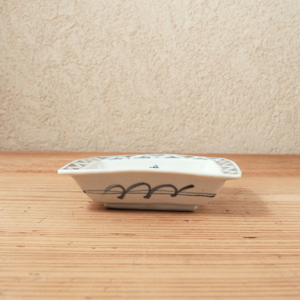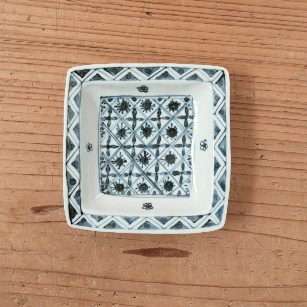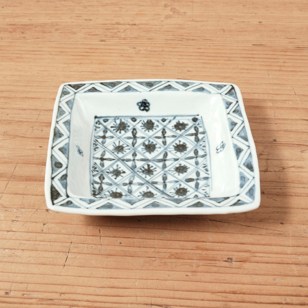 約11.5cm角のサイズは、副菜や取り分け皿にちょうどよく、日常の食卓で自然と出番の多くなる一枚。