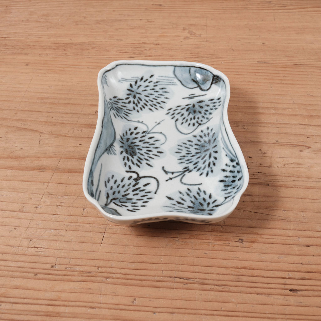 [ 柳川 謙治 ] 染付 笹文 隅切長四方皿