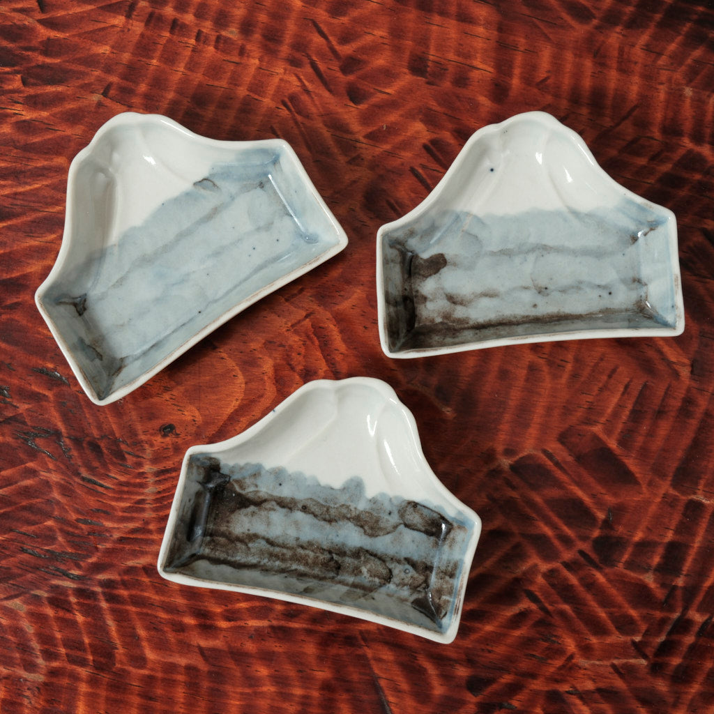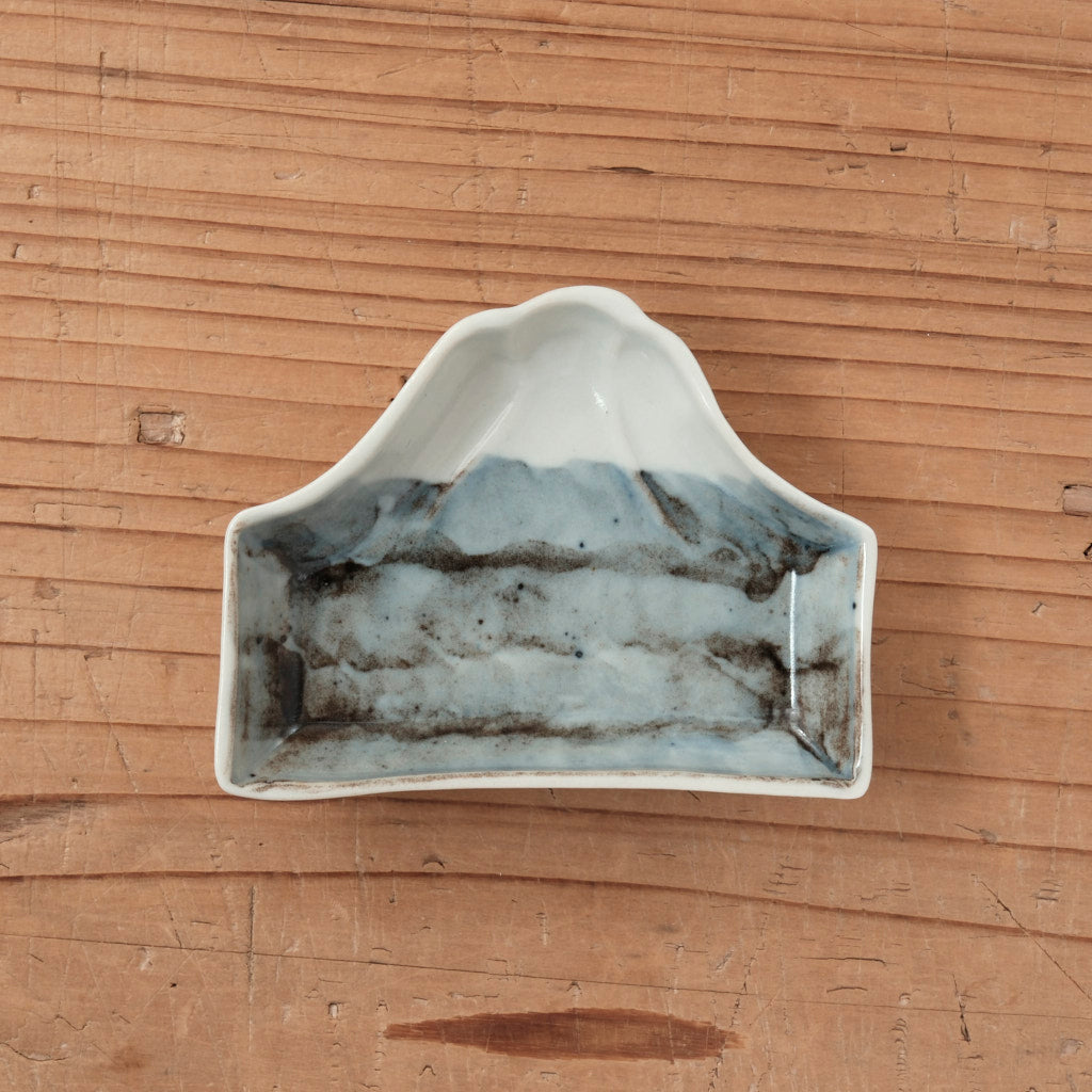 富士山をモチーフに、ゆるやかな稜線をかたどった染付の豆皿。