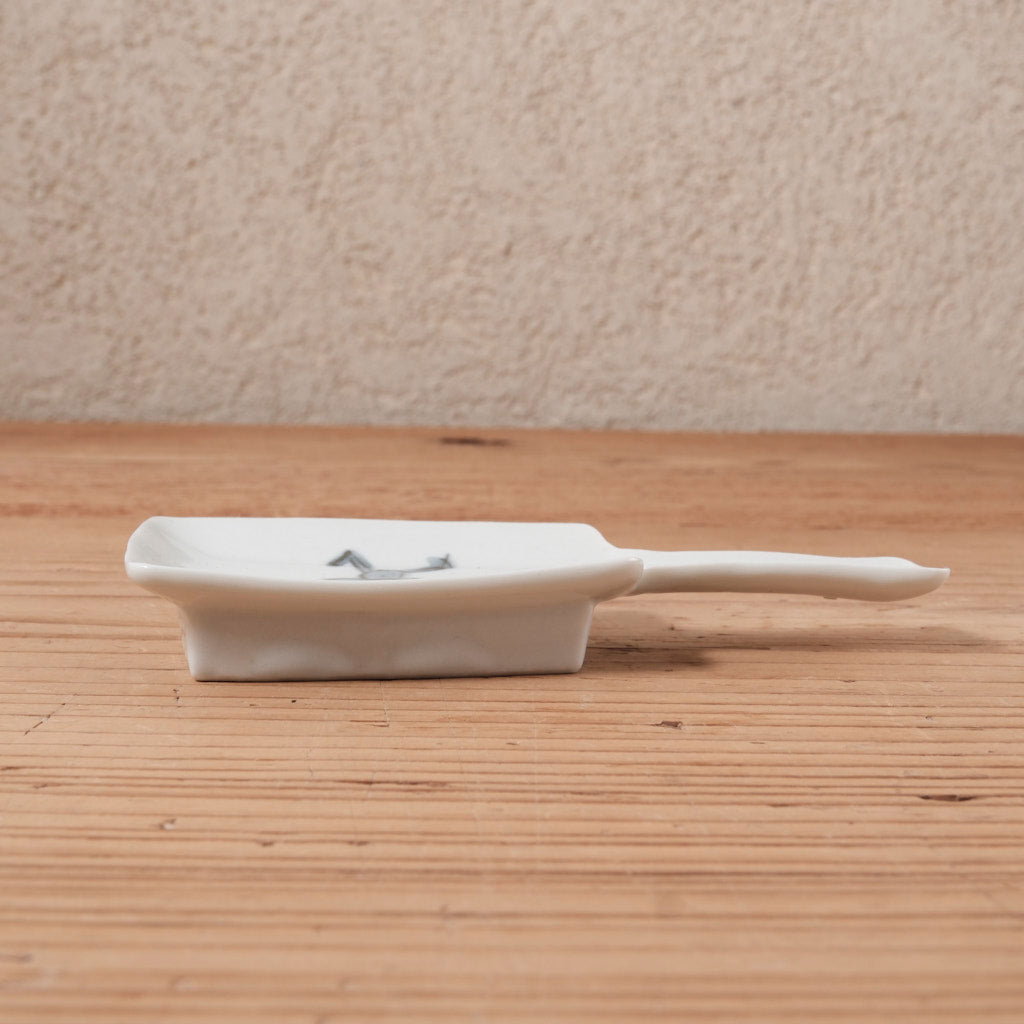 白磁の上に描かれた淡い染付の青が、個性的な形をやさしく包み込み、遊び心の中にも落ち着いた佇まいを感じさせます。しっかりとした造形でありながら、どこか肩の力が抜けたような表情は、柳川謙治さんらしい“余白”のある仕事です。